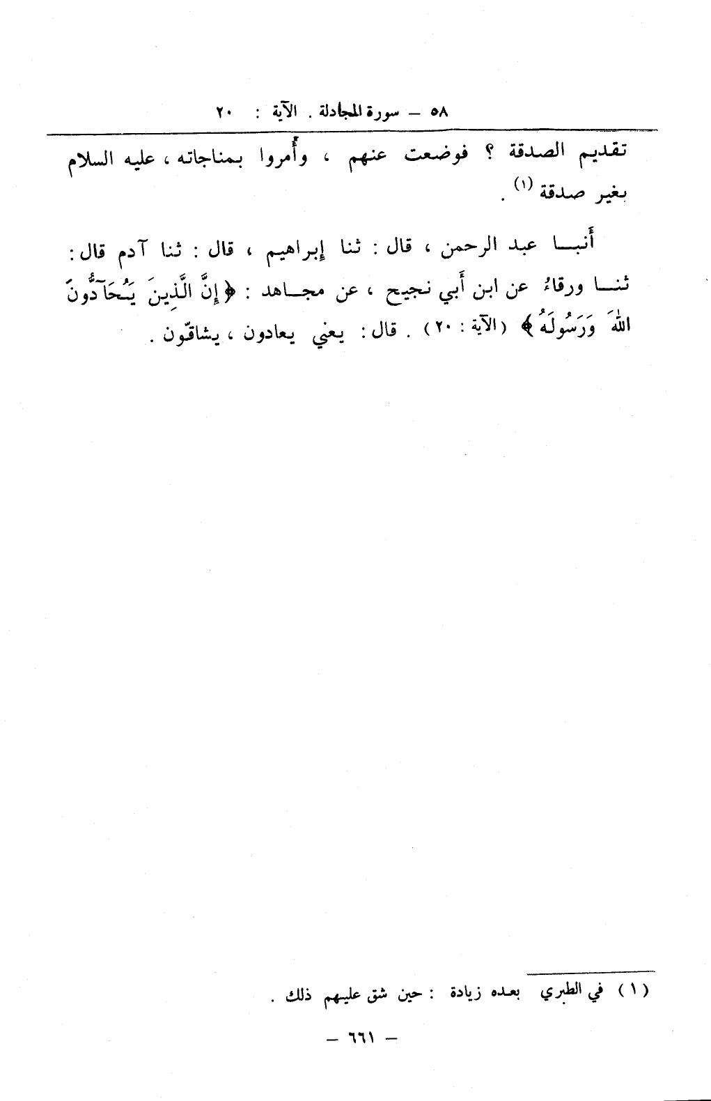 أنبا عبد الرحمن قال ثنا إبراهيم قال ثنا آدم قال ثنا ورقاء عن ابن أبي نجيح عن مجاهد إن الذين يحآدون الله ورسوله قال يعني يعادون يشاقون