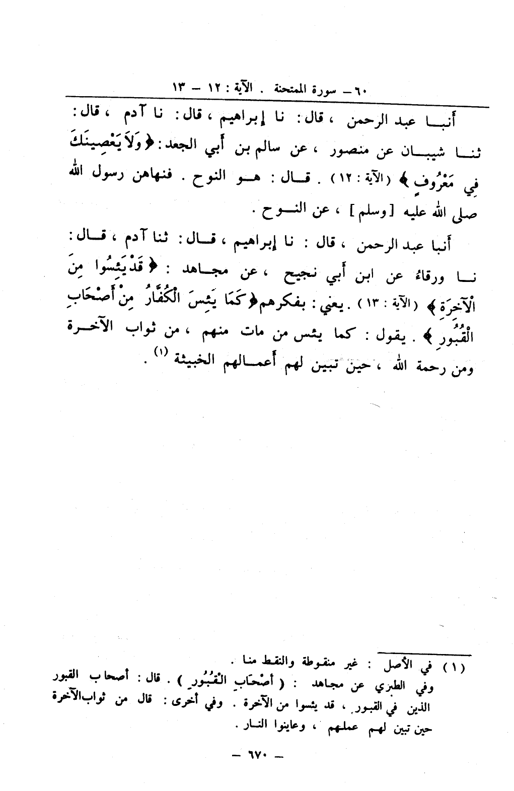 أنبا عبد الرحمن قال نا إبراهيم قال نا آدم قال ثنا شيبان عن منصور عن سالم بن أبي الجعد ولا يعصينك في معروف قال هو النوح فنهاهن رسول الله صلى الله عليه و سلم عن النوح