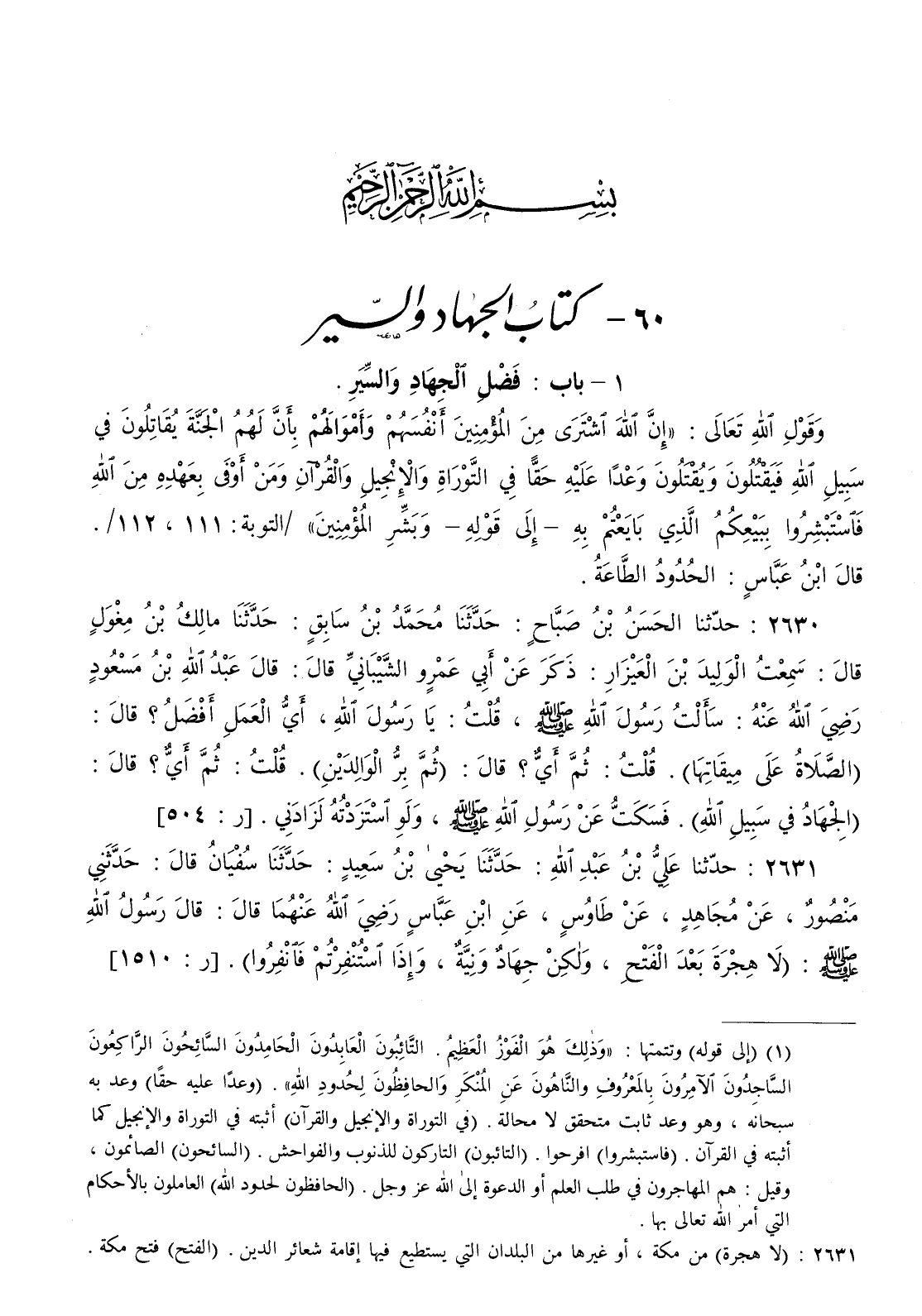 2631 - حدثنا علي بن عبد الله حدثنا يحيى بن سعيد حدثنا سفيان قال حدثني منصور عن مجاهد عن طاوس عن ابن عباس رضي الله عنهما قال