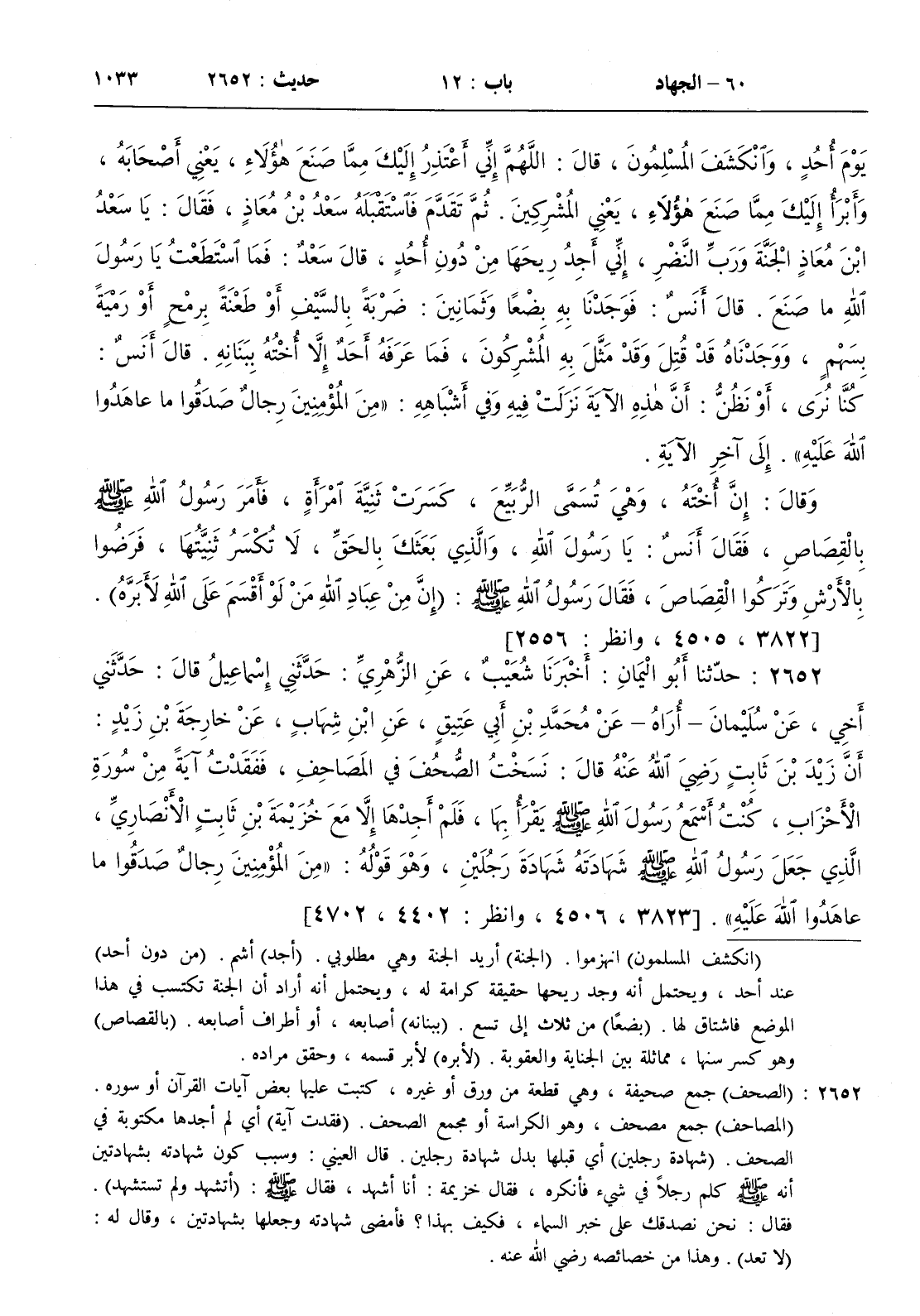 [ ش ( الصحف ) جمع صحيفة وهي قطعة من ورق أو غيره كتبت عليها بعض آيات القرآن أو سوره . ( المصاحف ) جمع مصحف وهو الكراسة أو مجمع الصحف . ( فقدت آية ) أي لم أجدها مكتوبة في الصحف . ( شهادة رجلين ) أي قبلها بدل شهادة رجلين . قال العيني وسبب كون شهادته بشهادتين أنه صلى الله عليه و سلم كلم رجلا في شيء فأنكره فقال خزيمة أنا أشهد فقال صلى الله عليه و سلم ( أتشهد ولم تستشهد ) . فقال نحن نصدقك على خبر السماء فكيف بهذا ؟ فأمضى شهادته وجعلها بشهادتين وقال له ( لا تعد ) . وهذا من خصائصه رضي الله عنه ]