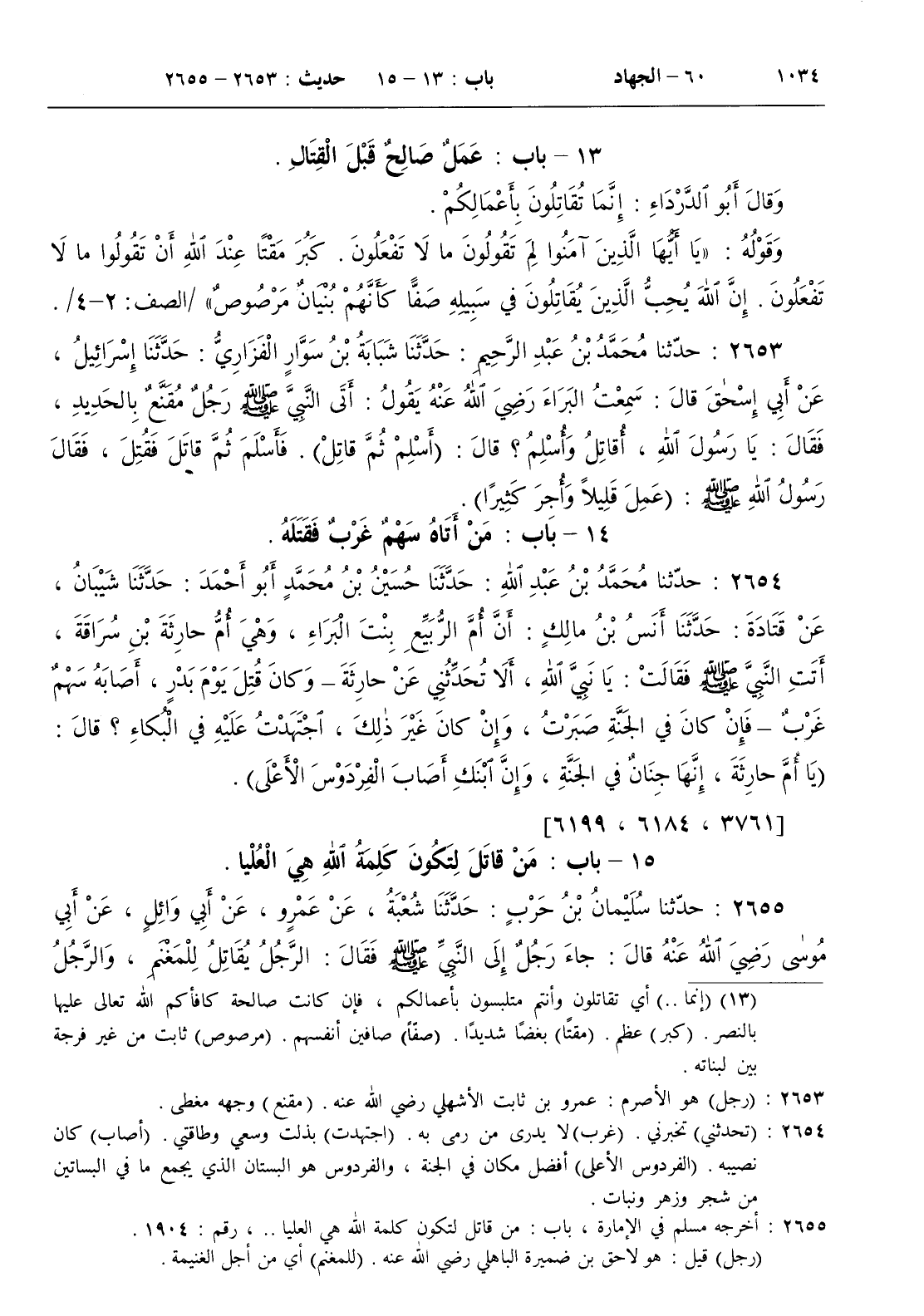 15 - باب من قاتل لتكون كلمة الله هي العليا
