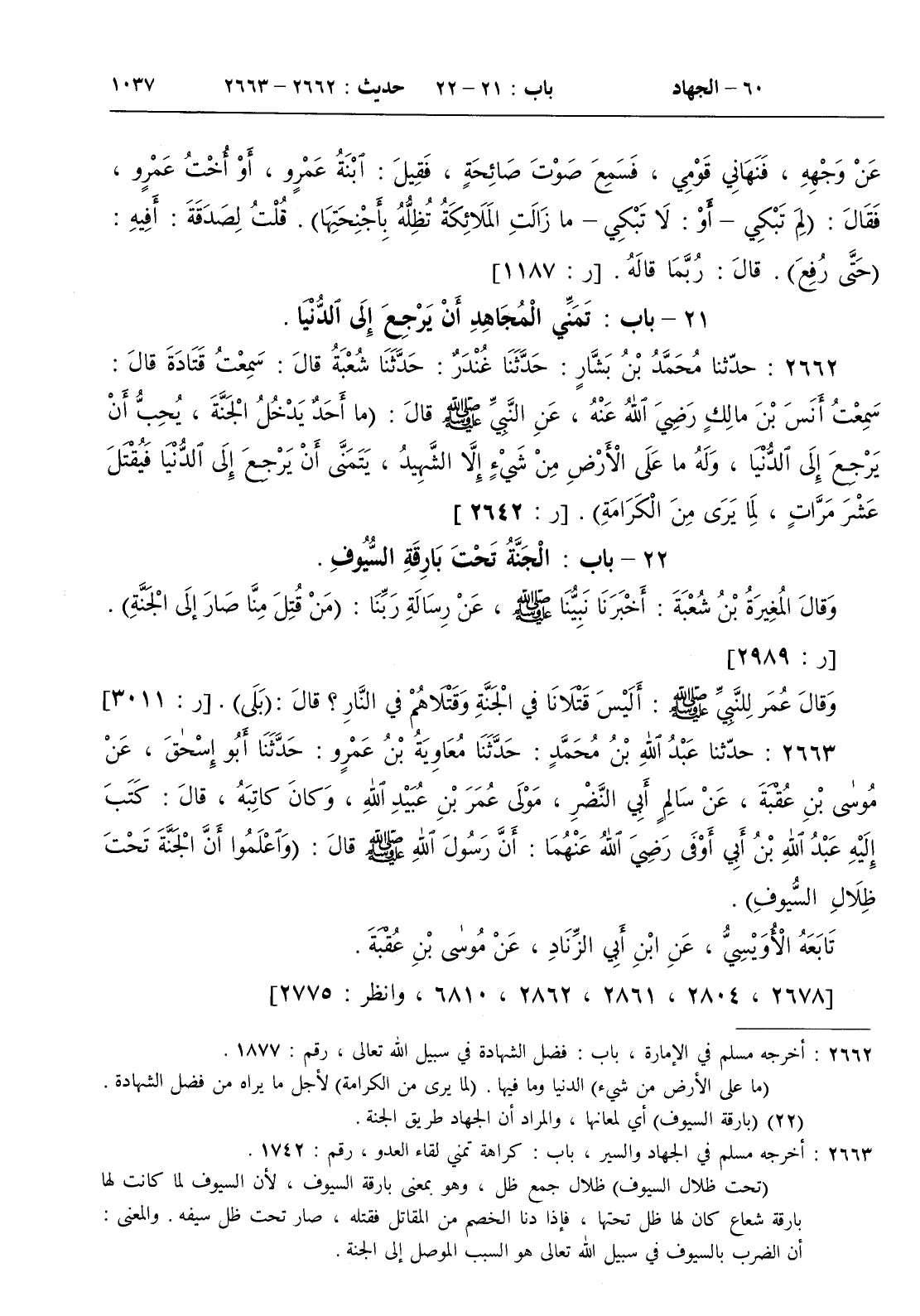 [ ش أخرجه مسلم في الجهاد والسير باب كراهة تمني لقاء العدو رقم 1742 . ( تحت ظلال السيوف ) ظلال جمع ظل وهو بمعنى بارقة السيوف لأن السيوف لما كانت لها بارقة شعاع كان لها ظل تحتها فإذا دنا الخصم من المقاتل فقتله صار تحت ظل سيفه . والمعنى أن الضرب بالسيوف في سبيل الله تعالى هو السبب الموصل إلى الجنة ]