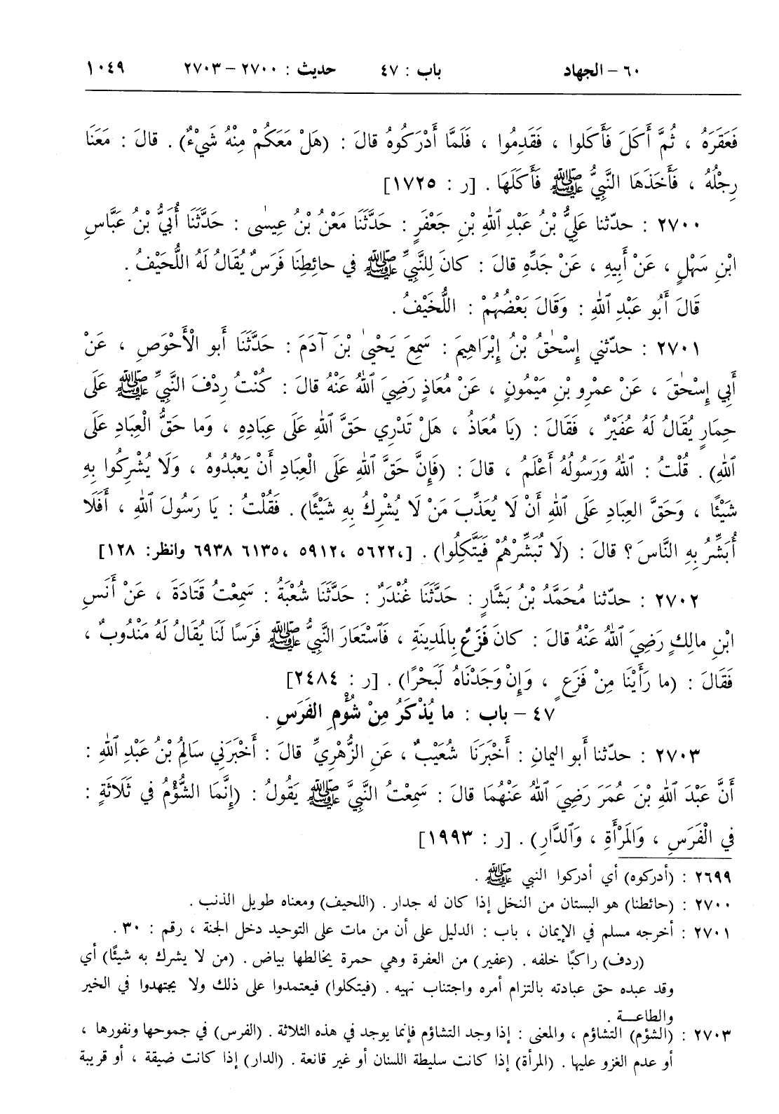 2701 - حدثني إسحاق بن إبراهيم سمع يحيى بن آدم حدثنا أبو الأحوص عن أبي إسحاق عن عمرو بن ميمون عن معاذ رضي الله عنه قال