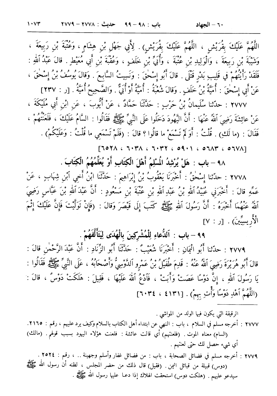 99 - باب الدعاء للمشركين بالهدى ليتألفهم