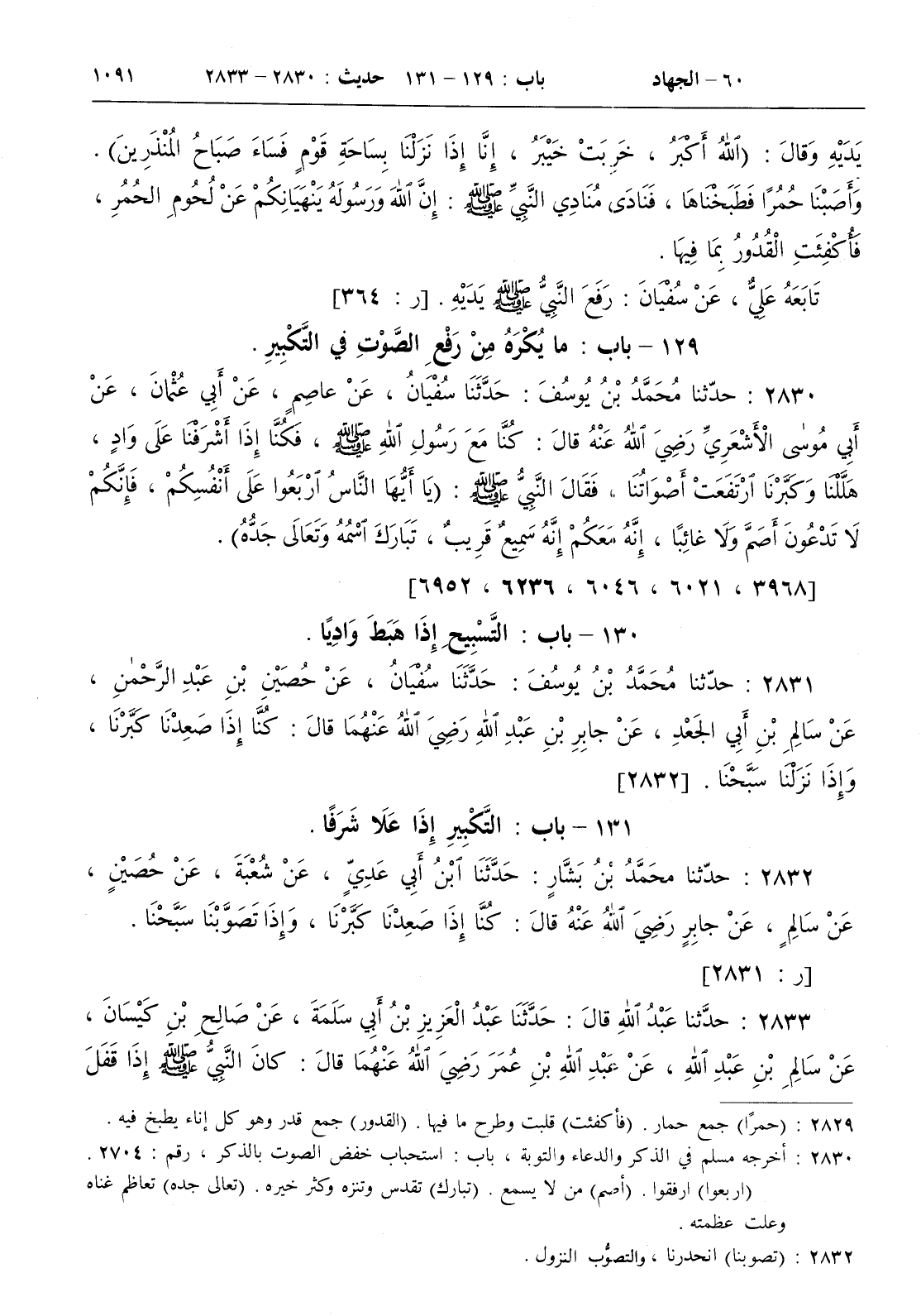 : كناإذا صعدنا كبرنا وإذا نزلنا سبحنا