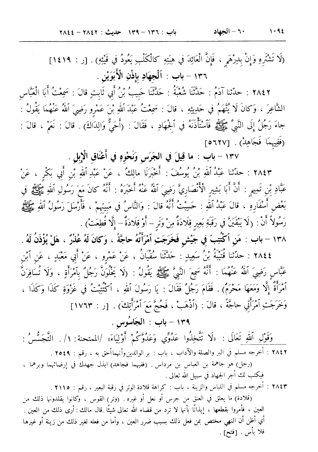 138 - باب من اكتتب في جيش فخرجت امرأته حاجة وكان له عذر هل يؤذن له