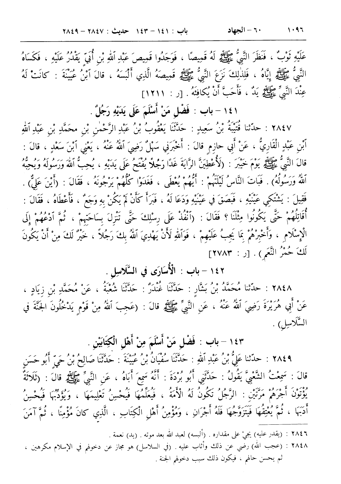 : عن النبي صلى الله عليه و سلم قال ( عجب الله من قوم يدخلون الجنة في السلاسل )