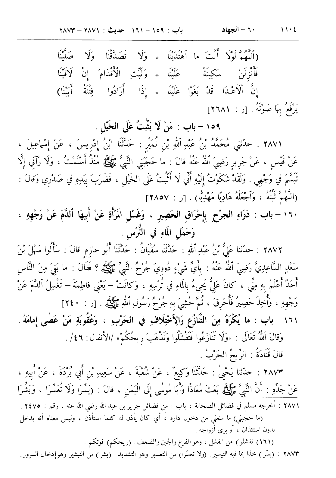 161 - باب ما يكره من التنازع والاختلاف في الحرب وعقوبة من عصى إمامه