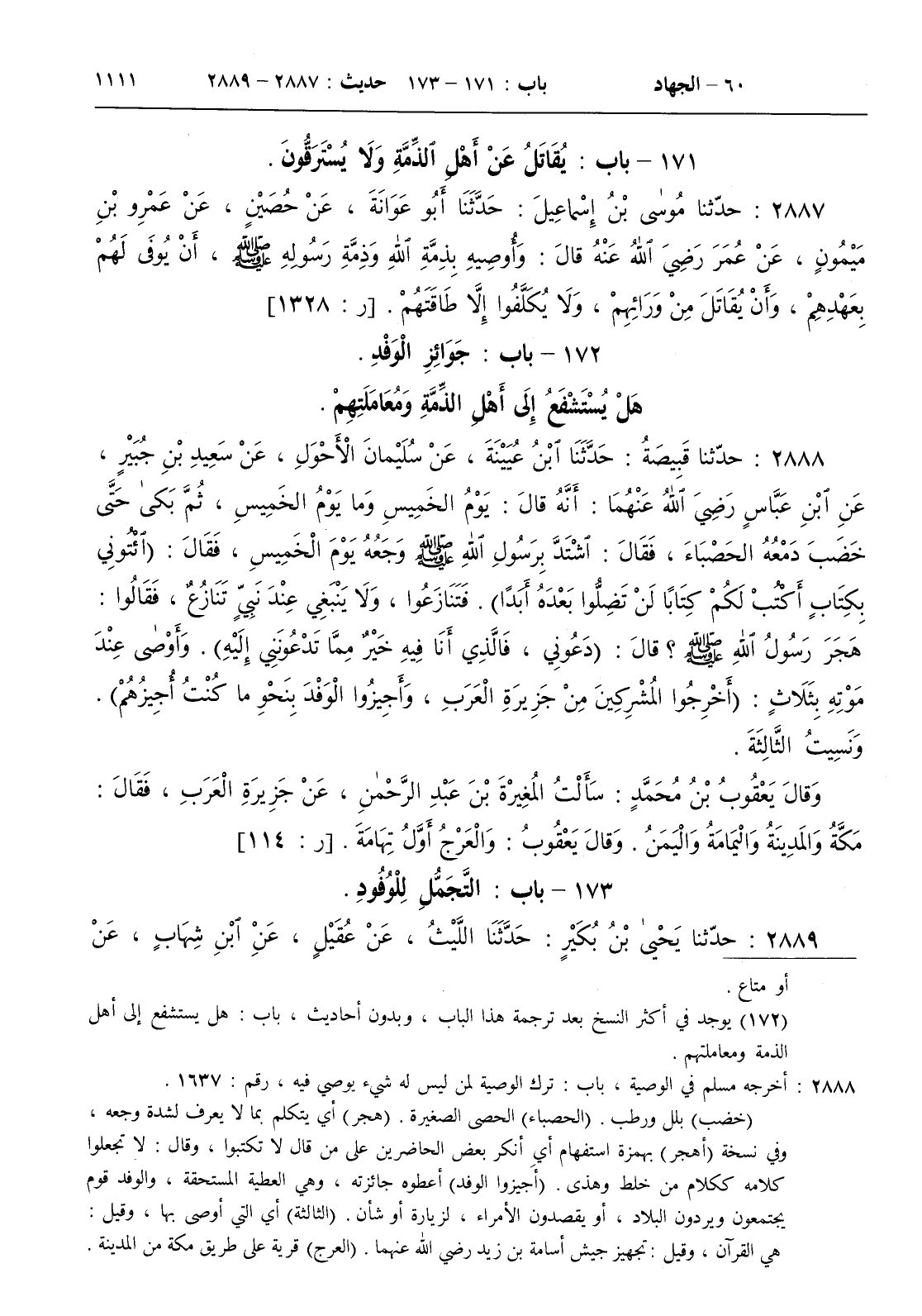 [ ش يوجد في أكثر النسخ بعد ترجمة هذا الباب وبدون أحاديث باب هل يستشفع إلى أهل الذمة ومعاملتهم ]