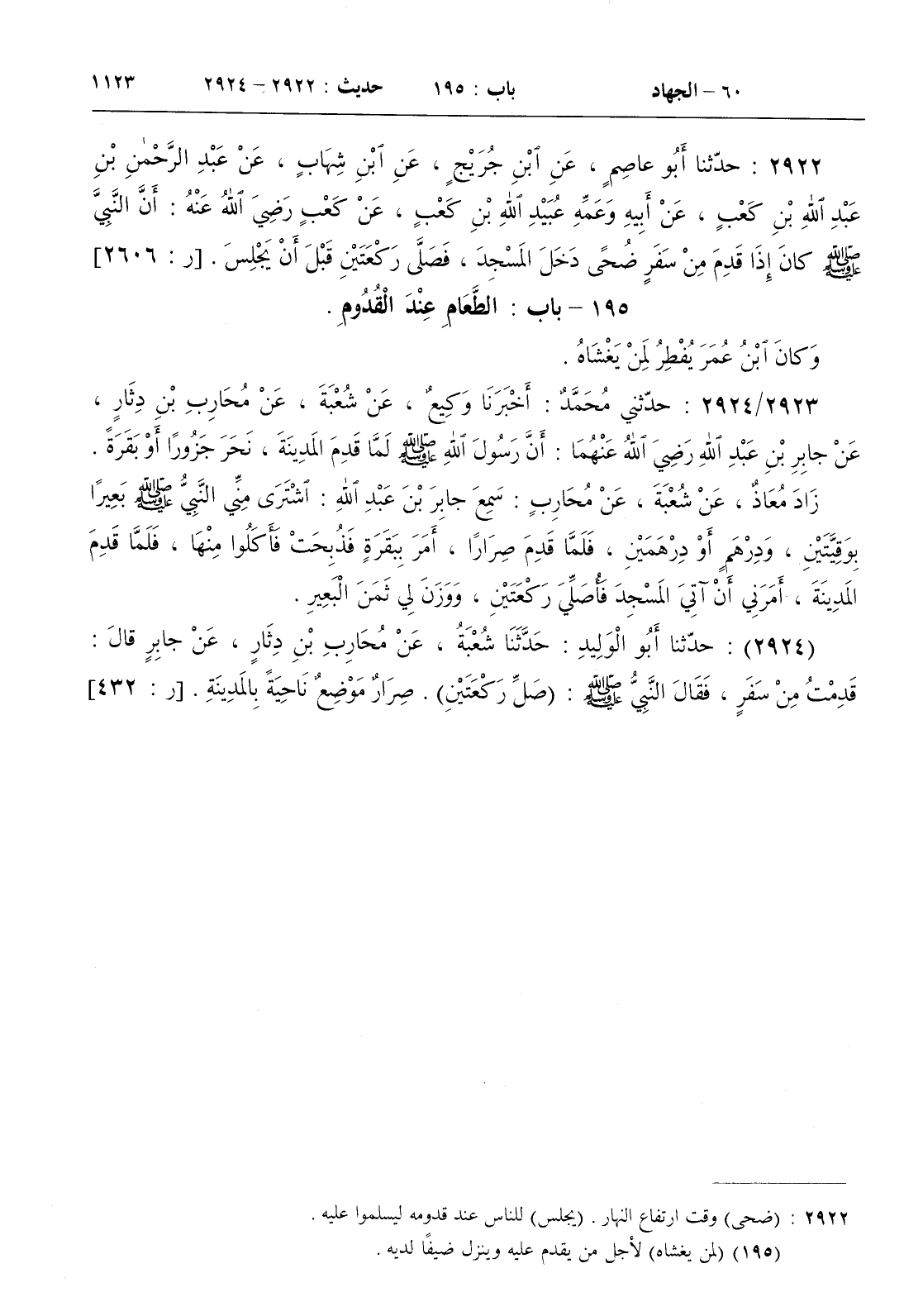 2924 - حدثنا أبو الوليد حدثنا شعبة عن محارب بن دثار عن جابر قال