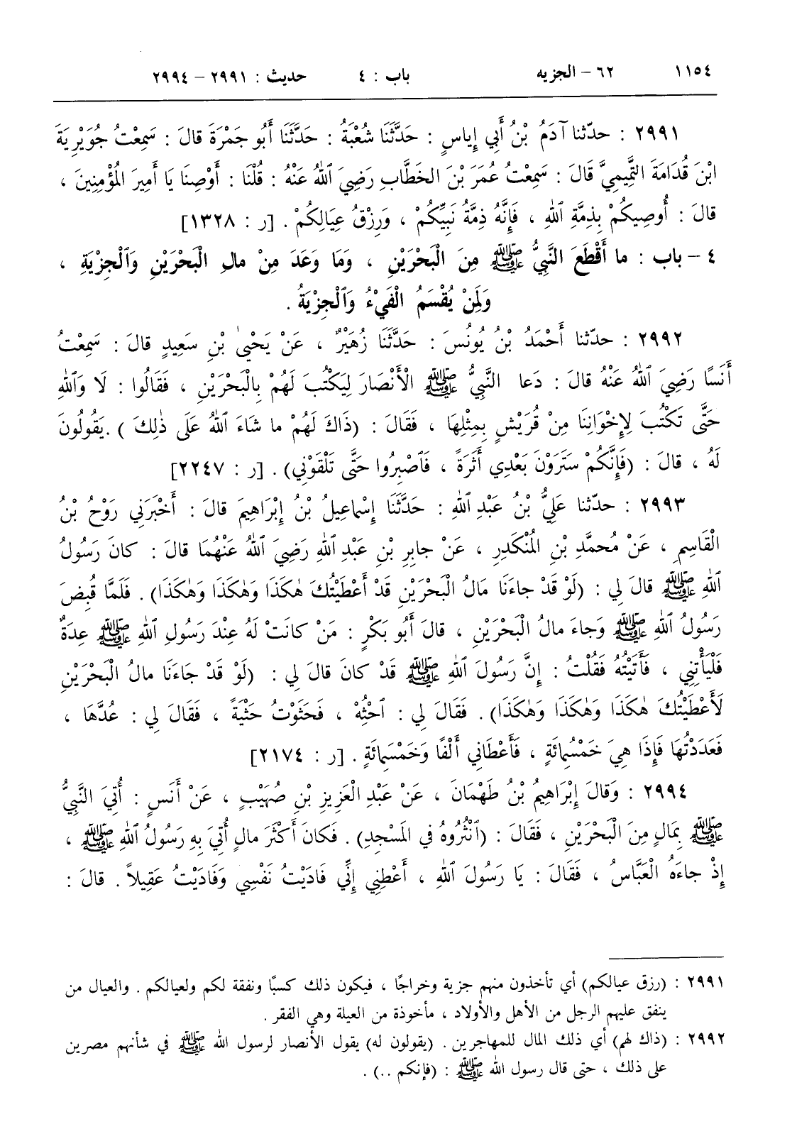 4 - باب ما أقطع النبي صلى الله عليه و سلم من البحرين وما وعد من مال البحرين والجزية ولمن يقسم الفيء والجزية