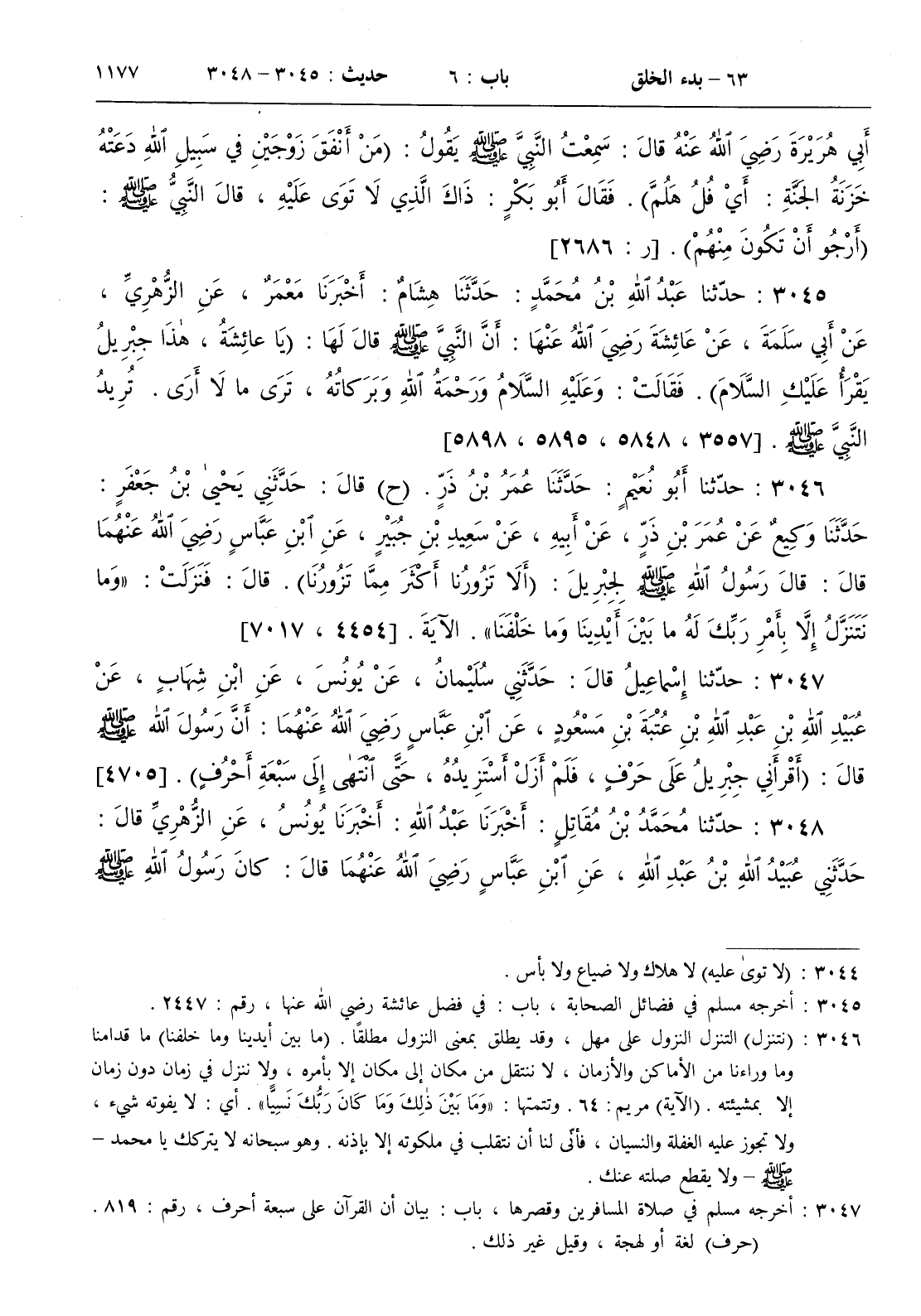 3045 - حدثنا عبد الله بن محمد حدثنا هشام أخبرنا معمر عن الزهري عن أبي سلمة عن عائشة رضي الله عنها