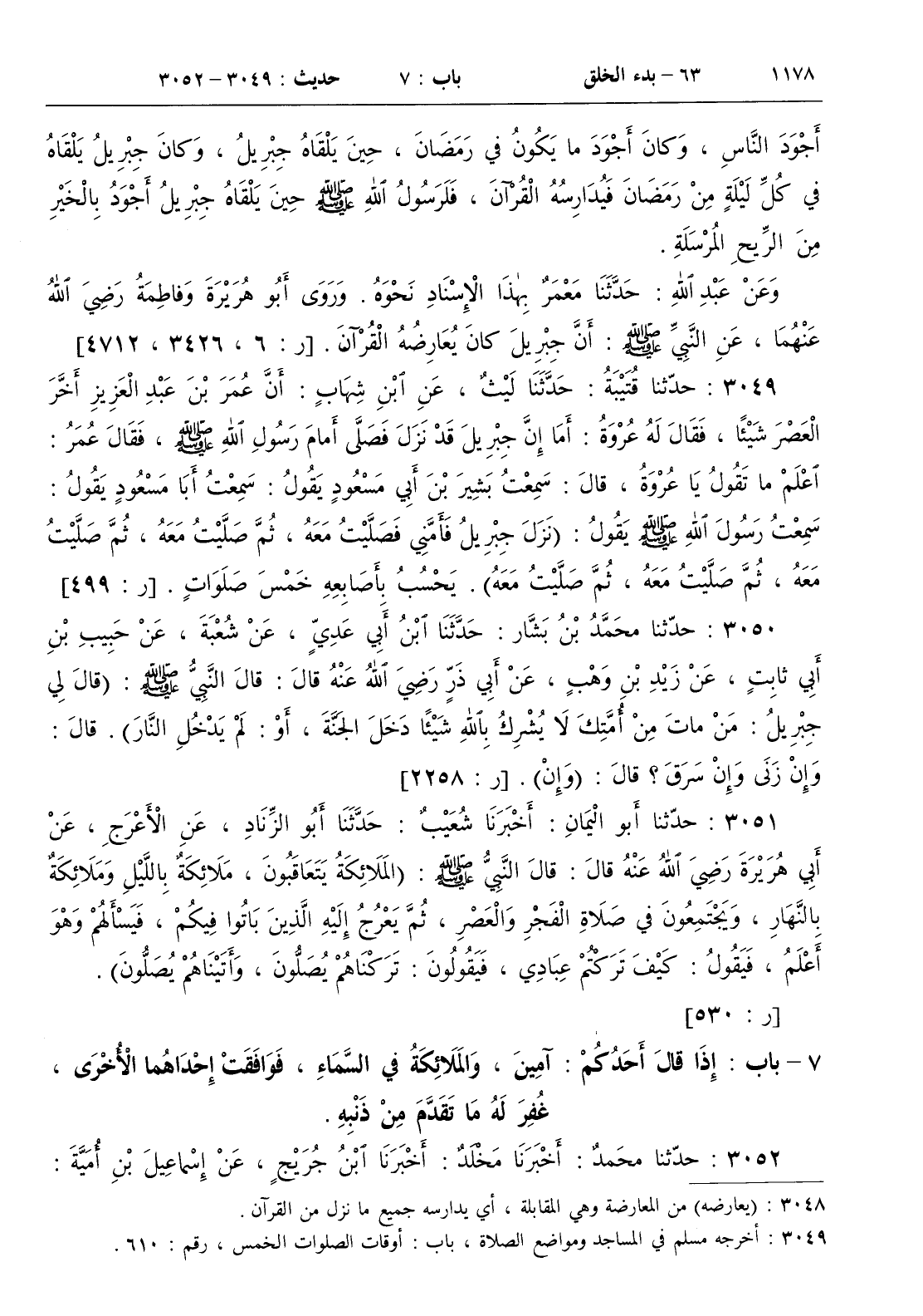 3051 - حدثنا أبو اليمان أخبرنا شعيب حدثنا أبو الزناد عن الأعرج عن أبي هريرة رضي الله عنه قال