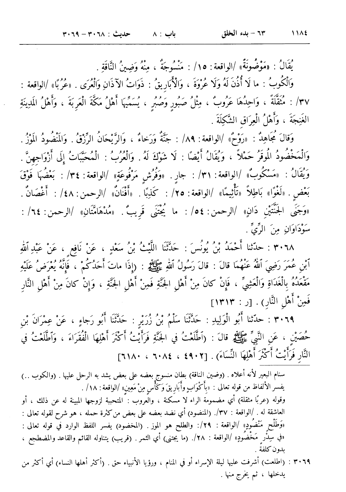 [ ش ( اطلعت ) أشرفت عليها ليلة الإسراء أو في المنام ورؤيا الأنبياء حق . ( أكثر أهلها النساء ) أي أكثر من يدخلها ثم يخرج منها ]