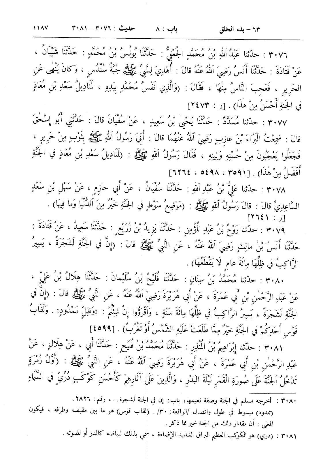 3076 - حدثنا عبد الله بن محمد الجعفي حدثنا يونس بن محمد حدثنا شيبان عن قتادة حدثنا أنس رضي الله عنه قال