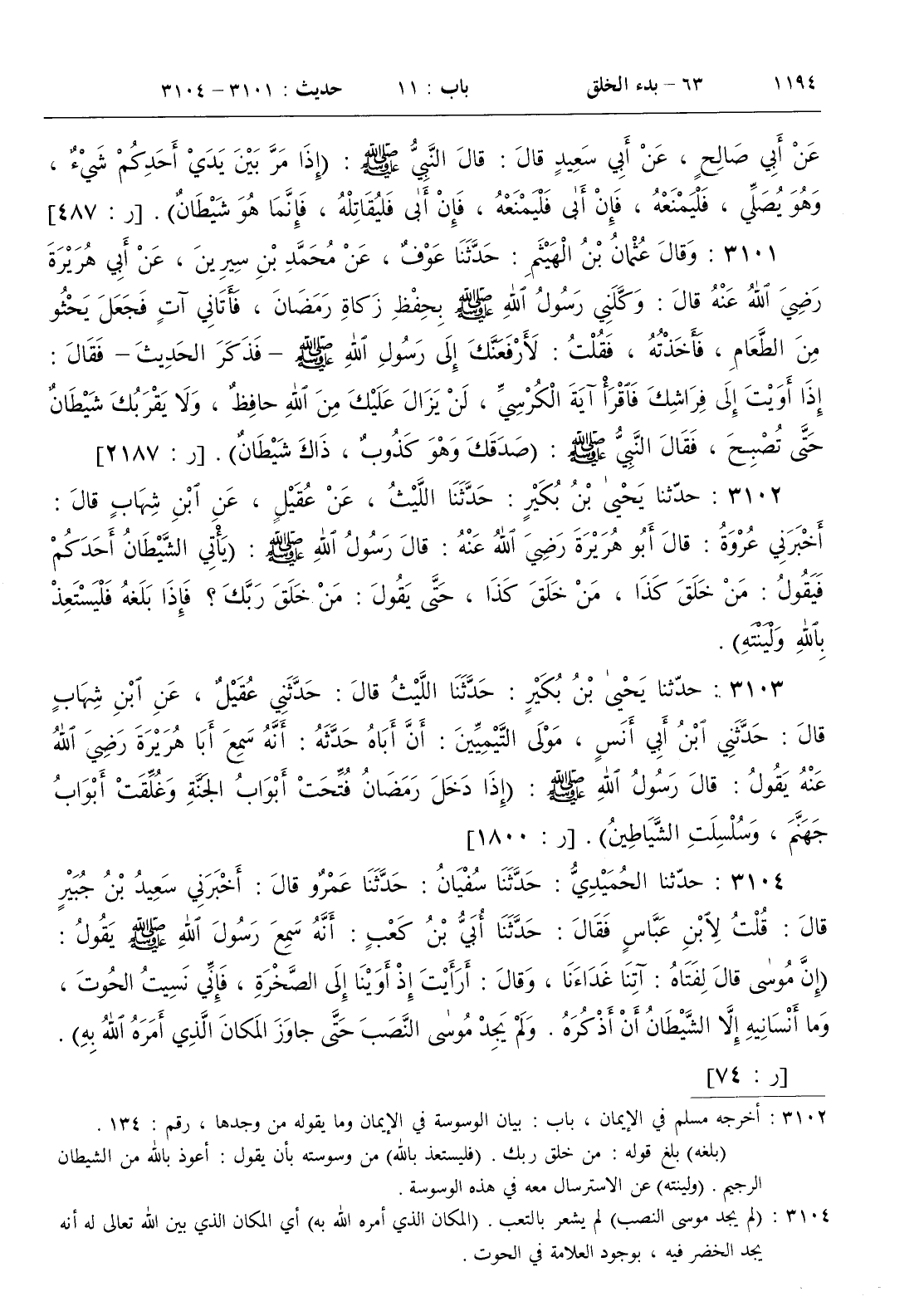 3103 - حدثنا يحيى بن بكير حدثنا الليث قال حدثني عقيل عن ابن شهاب قال حدثني ابن أبي أنس مولى التيميين أن أباه حدثه أنه سمع أبا هريرة رضي الله عنه يقول