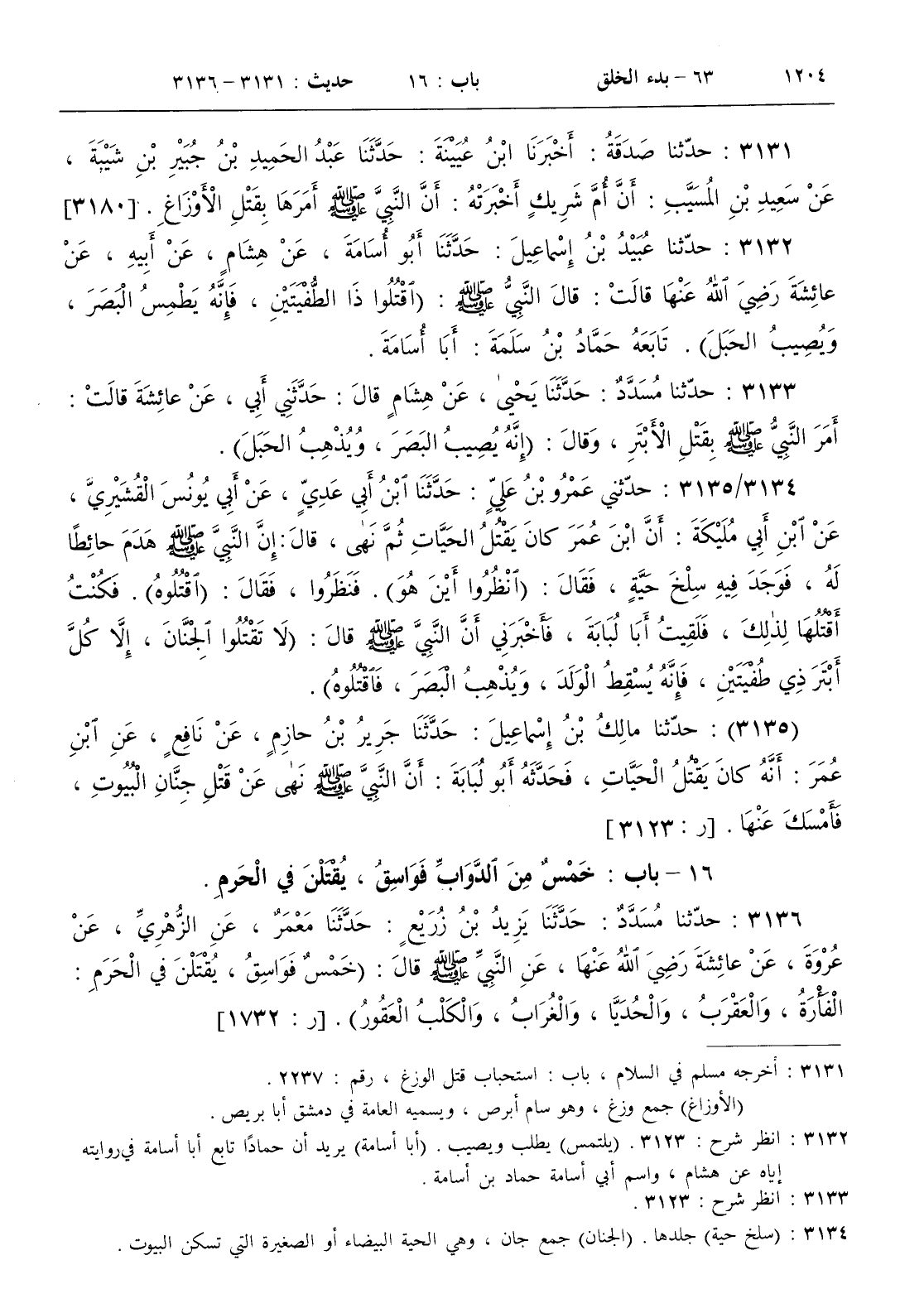 16 - باب خمس من الدواب فواسق يقتلن في الحرم