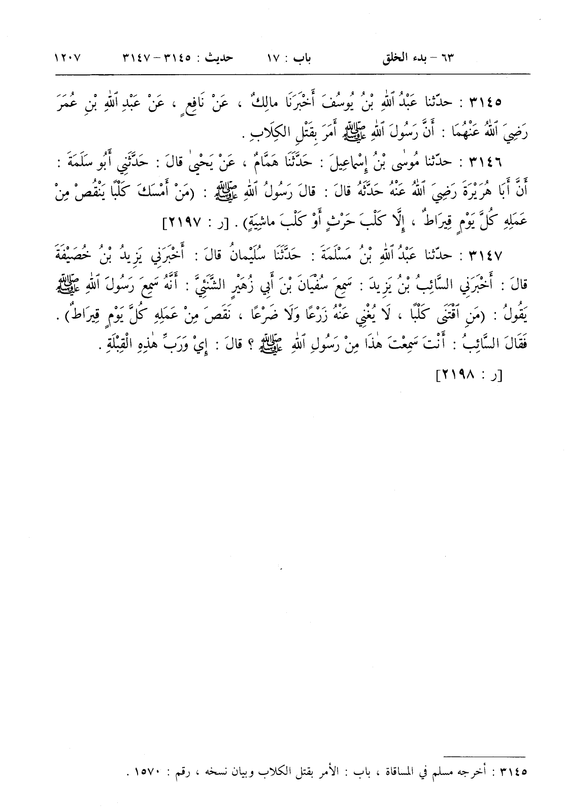 3145 - حدثنا عبد الله بن يوسف أخبرنا مالك عن نافع عن عبد الله ابن عمر رضي الله عنهما