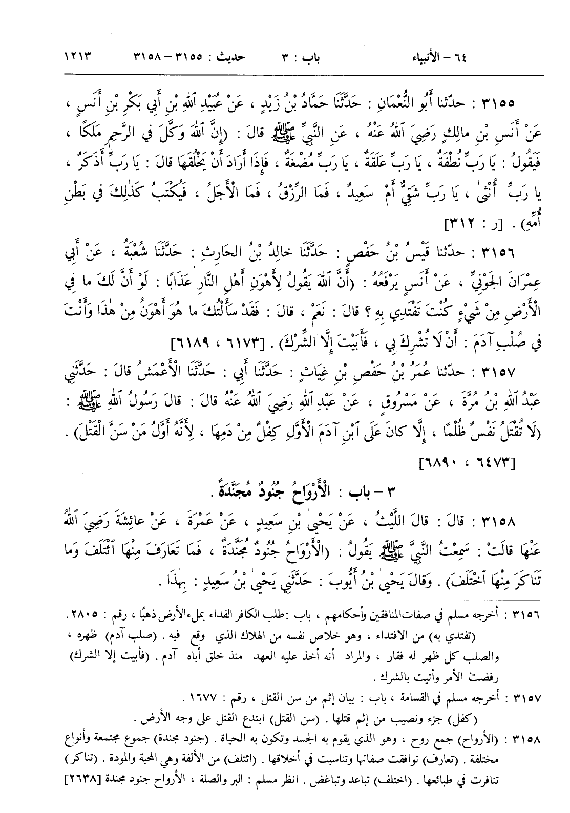 : سمعت النبي صلى الله عليه و سلم يقول ( الأرواح جنود مجندة فما تعارف منها ائتلف وما تناكر اختلف ) . وقال يحيى بن أيوب حدثني يحيى ابن سعيد بهذا