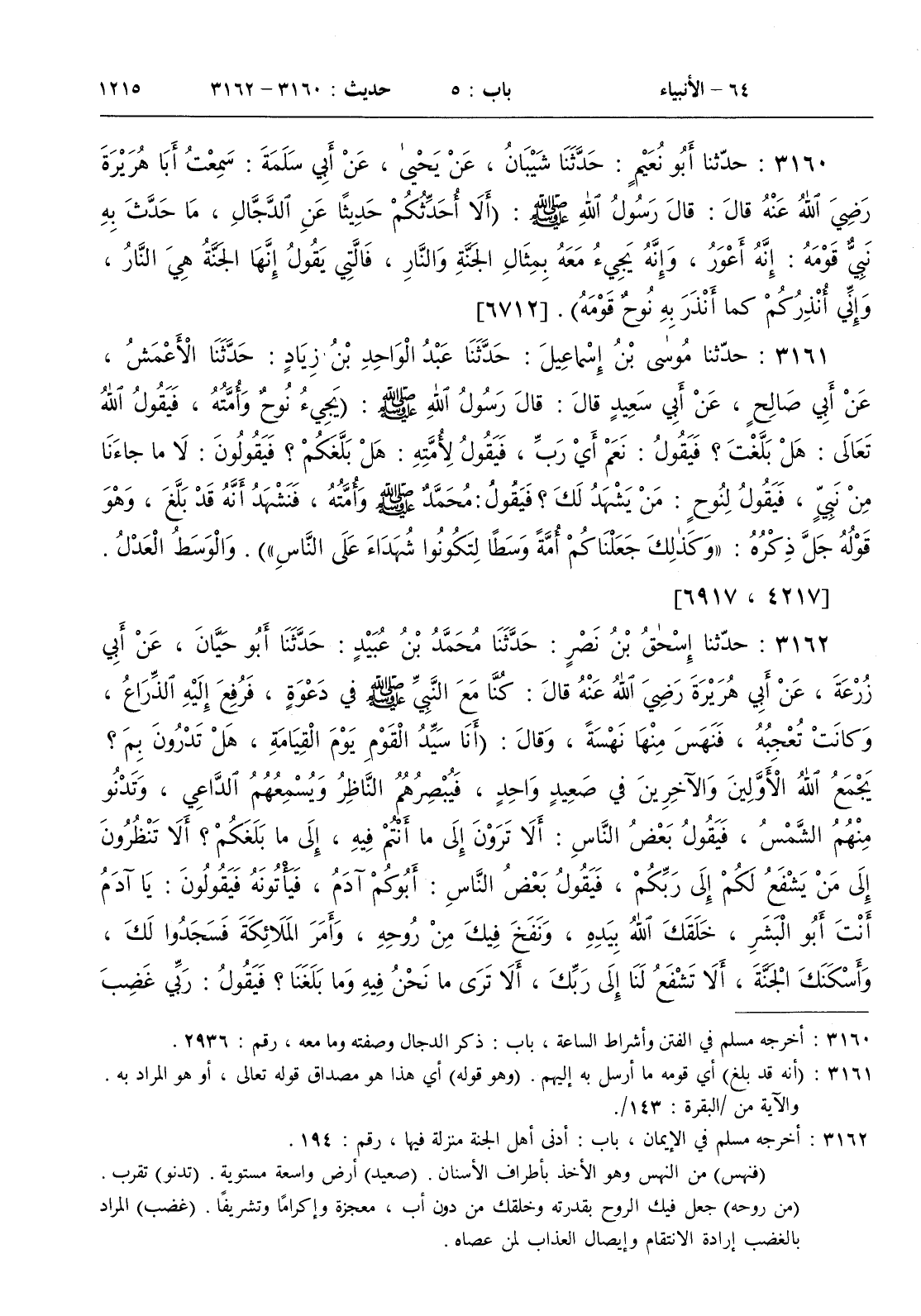 3161 - حدثنا موسى بن إسماعيل حدثنا عبد الواحد بن زياد حدثنا الأعمش عن أبي صالح عن أبي سعيد قال