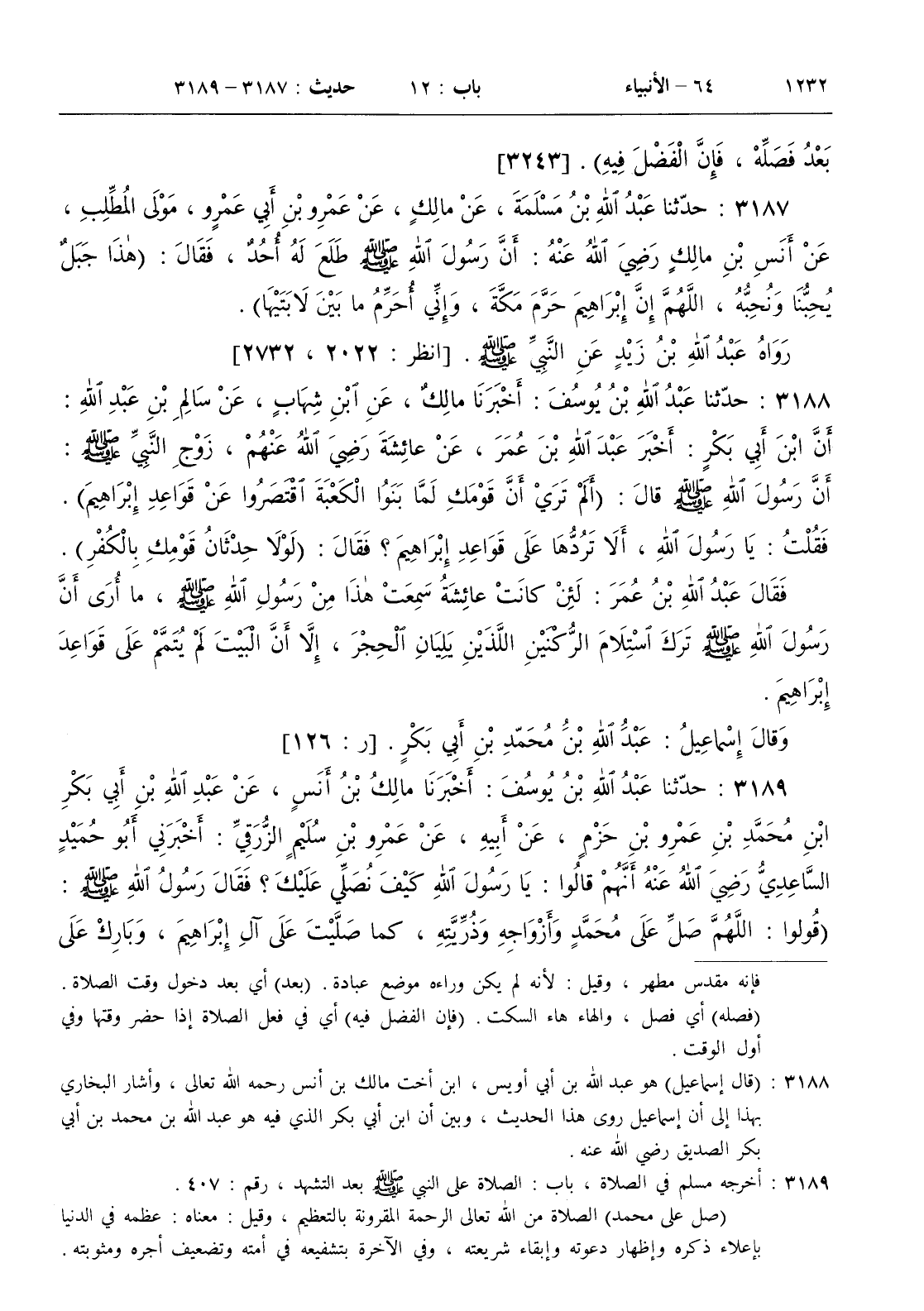 [ ش ( قال إسماعيل ) هو عبد الله بن أبي أويس ابن أخت مالك بن أنس رحمه الله تعالى وأشار البخاري بهذا إلى أن إسماعيل روى هذا الحديث وبين أن ابن أبي بكر الذي فيه هو عبد الله بن محمد بن أبي بكر الصديق رضي الله عنه ]