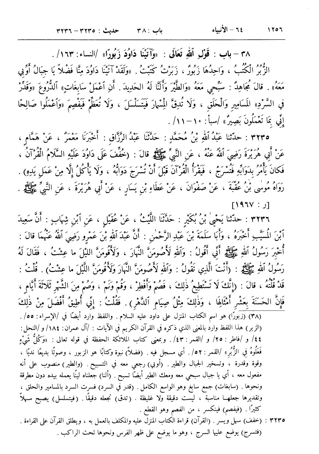 : عن النبي صلى الله عليه و سلم قال ( خفف على داود عليه السلام القرآن فكان يأمر بدوابه فتسرج فيقرأ القرآن قبل أن تسرج دوابه ولا يأكل إلا من عمل يده )