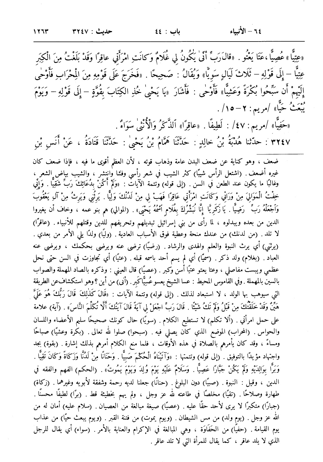 45 - باب قول الله تعالى { واذكر في الكتاب مريم إذ انتبذت من أهلها مكانا شرقيا } / مريم 16 /
