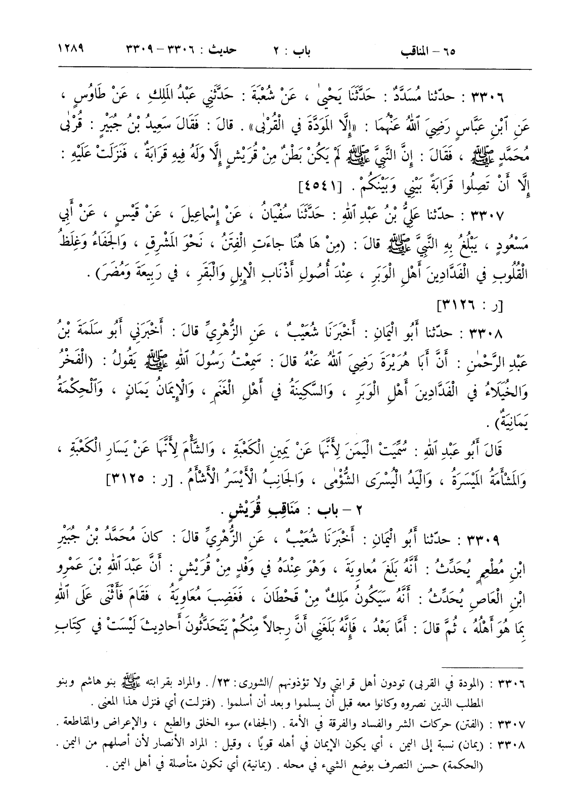 3309 - حدثنا أبو اليمان أخبرنا شعيب عن الزهري قال كان محمد ابن جبير بن مطعم يحدث