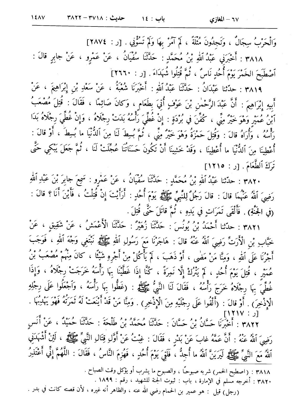 3820 - حدثنا عبد الله بن محمد حدثنا سفيان عن عمرو سمع حابر ابن عبد الله رضي الله عنهما قال