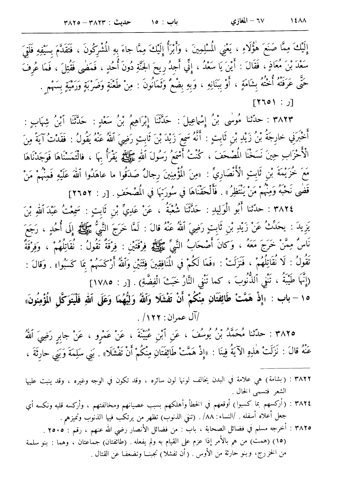 15 - باب { إذ همت طائفتان منكم أن تفشلا والله وليهما وعلى الله فليتوكل المؤمنون } . / آل عمران 122 /
