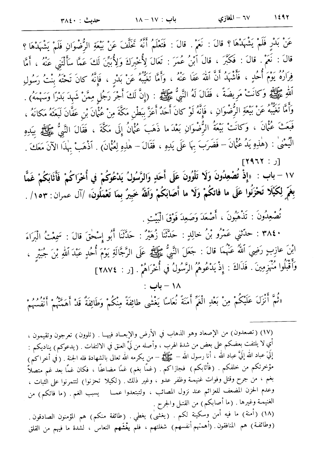 : جعل النبي صلى الله عليه و سلم على الرجالة يوم أحد عبد الله بن جبير وأقبلوا منهزمين . فذاك إذ يدعوهم الرسول في أخراهم