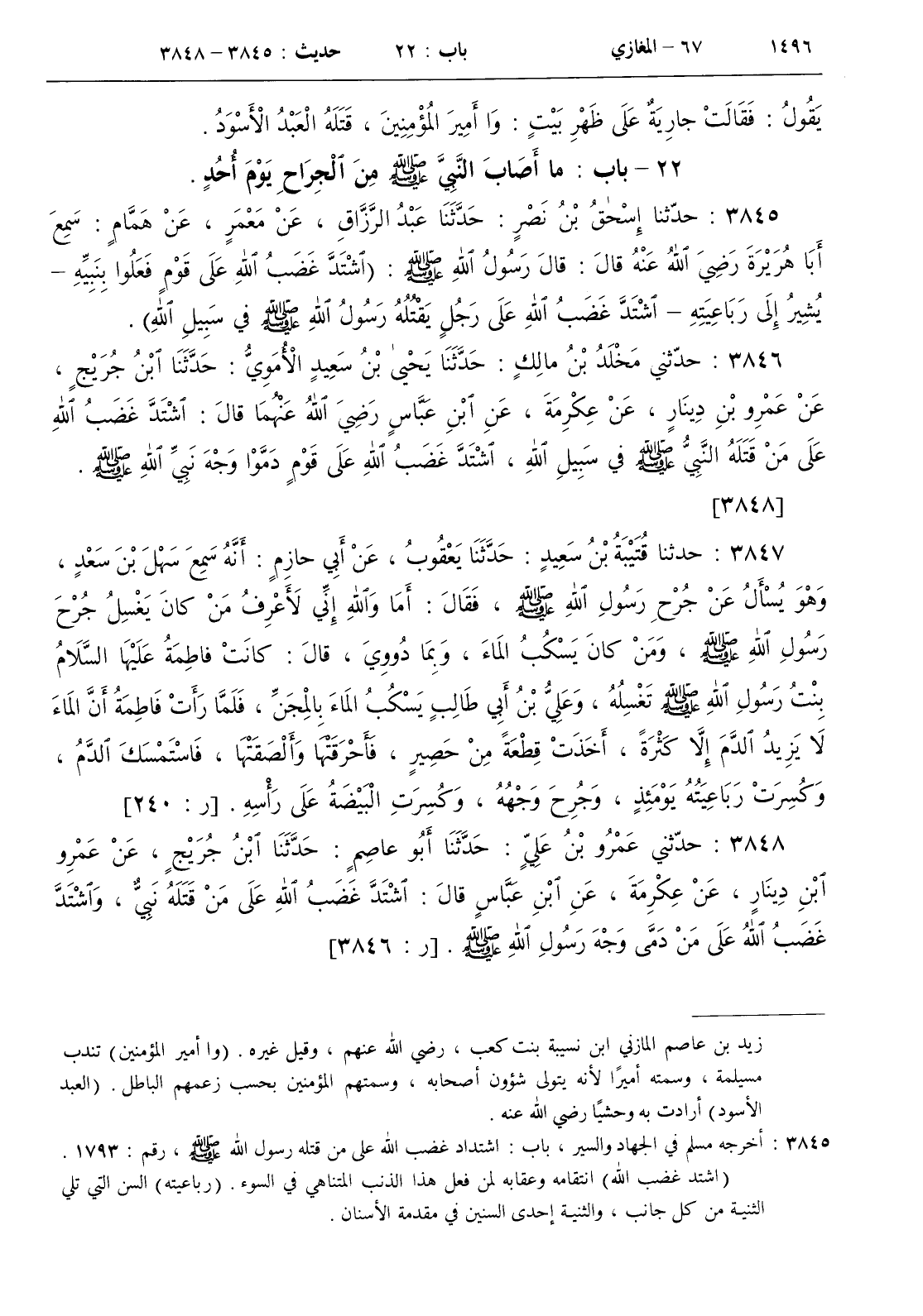 : قال رسول الله صلى الله عليه و سلم ( اشتد غضب الله على قوم فعلوا بنبيه - يشير إلى رباعيته - اشتد غضب الله على رجل يقتله رسول الله صلى الله عليه و سلم في سبيل الله )