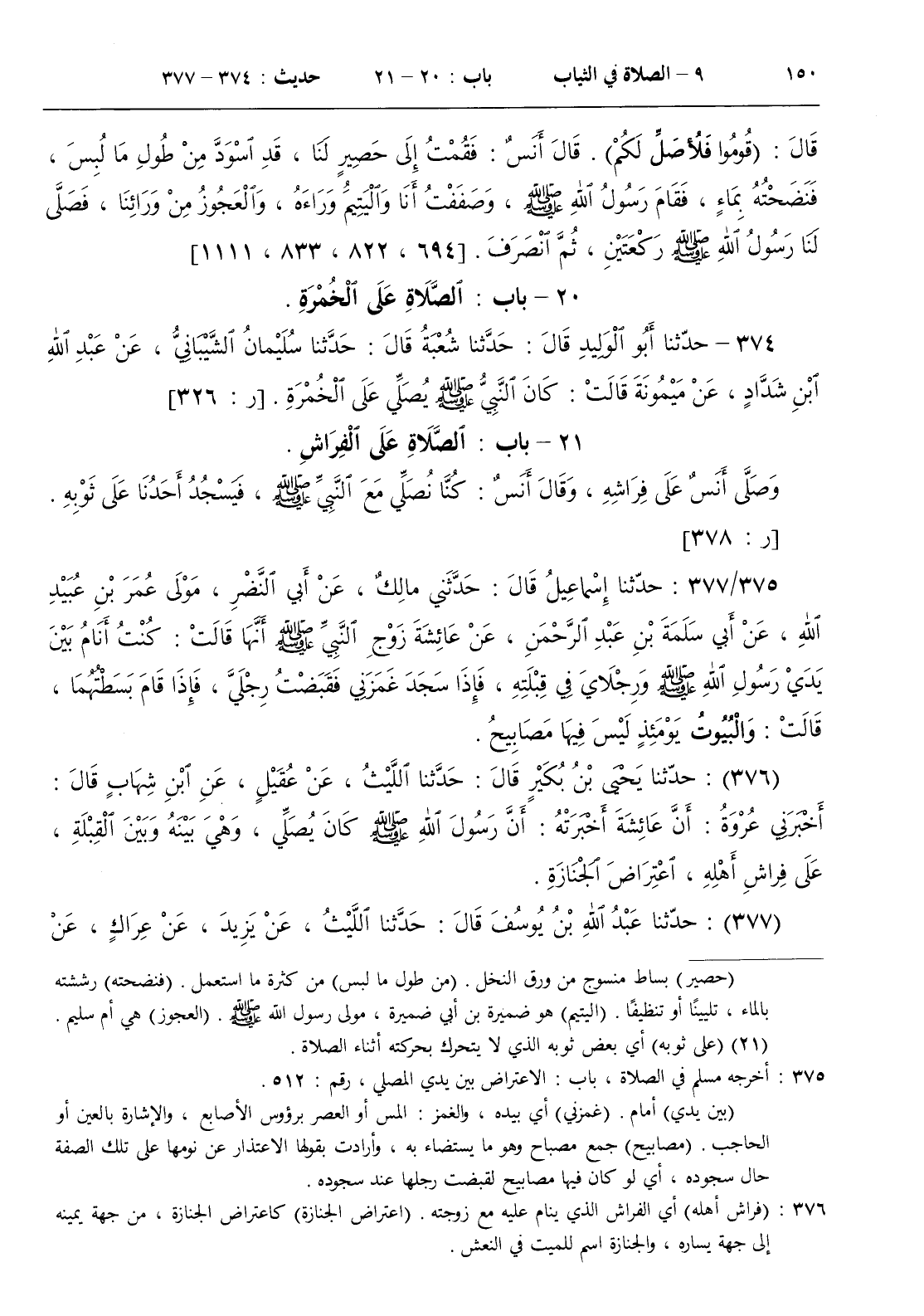 21 - باب الصلاة على الفراش