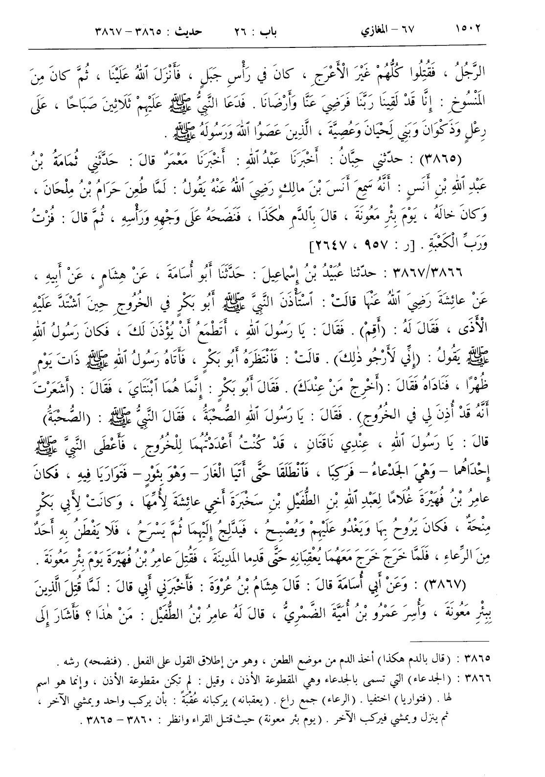 [ ش ( الجدعاء ) التي تسمى بالجدعاء وهي مقطوعة الأذن وقيل لم تكن مقطوعة الأذن إنما هو اسم لها . ( فتواريا ) اختفيا . ( الرعاء ) جمع راع . ( يعقبانه ) يركبانه عقبة بأن يركب واحد ويمشي الآخر ثم ينزل ويمشي فيركب الآخر . ( يوم بئر معونة ) حيث قتل القراء وانظر 3860 - 3865 ]