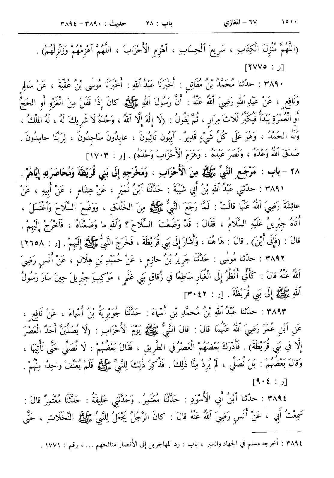 28 - باب مرجع النبي صلى الله عليه و سلم من الأحزاب ومخرجه إلى بني قريظة ومحاصرته إياهم