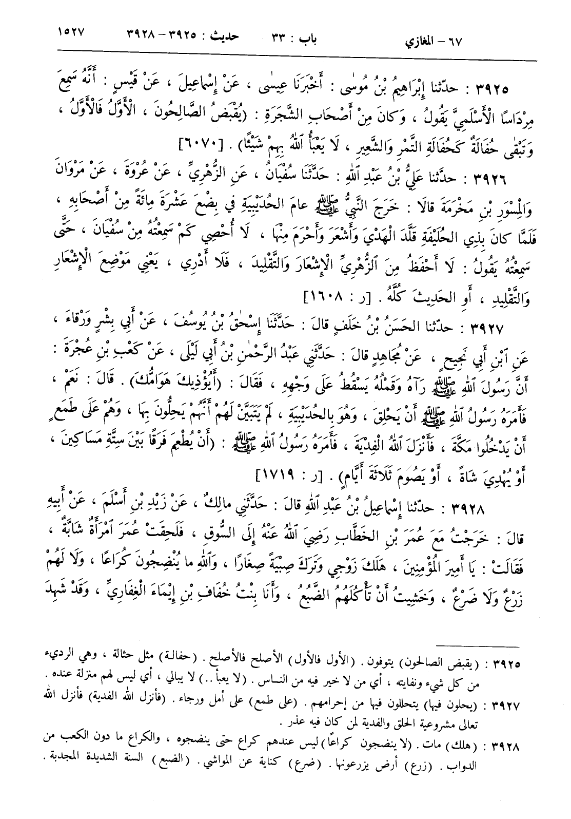 : خرج النبي صلى الله عليه و سلم عام الحديبية في بضع عشرة مائة من أصحابه فلما كان بذي الحليفة قلد الهدي وأشعر وأحرم منها لا أحصي كم سمعته من سفيان حتى سمعته يقول لا أحفظ من الزهري الإشعار والتقليد فلا أدري يعني موضع الإشعار والتقليد أو الحديث كله