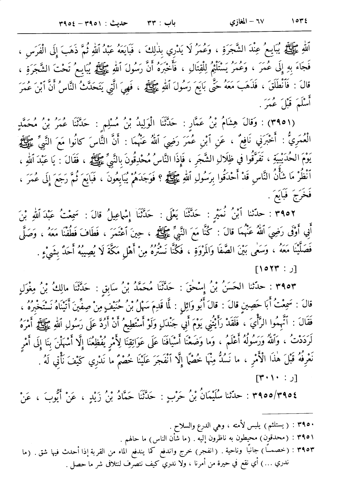 3951 - وقال هشام بن عمار حدثنا الوليد بن مسلم حدثنا عمر بن محمد العمري أخبرني نافع عن ابن عمر رضي الله عنهما