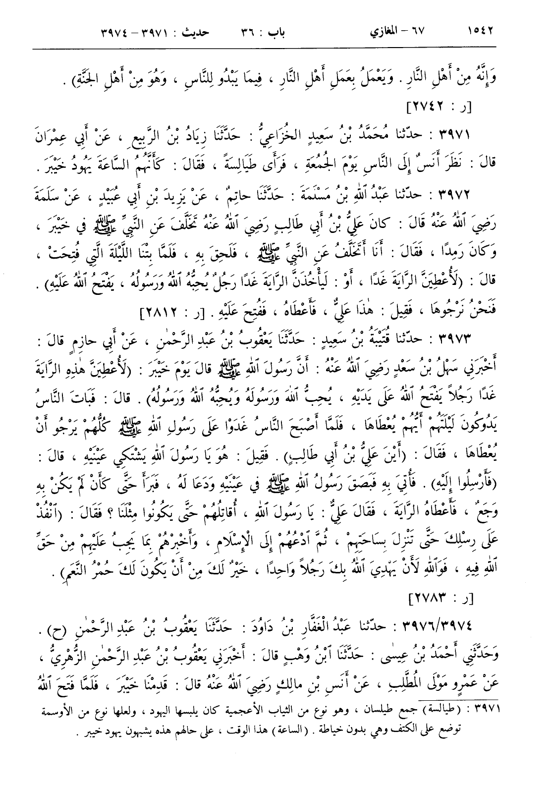 3973 - حدثنا قتيبة قن سعيد حدثنا يعقوب بن عبد الرحمن عن أبي حازم قال أخبرني سهل بن سعد رضي الله عنه