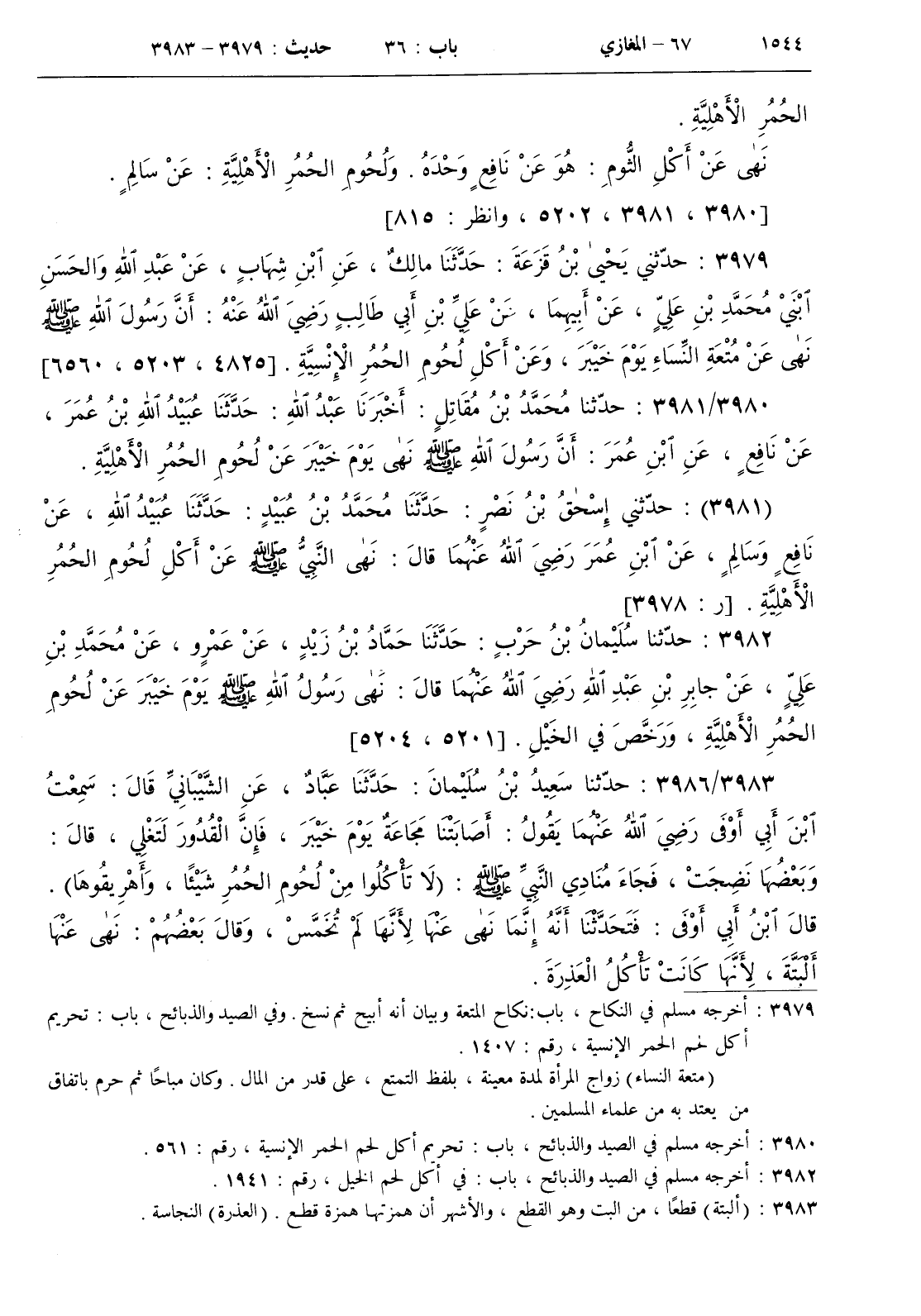 : نهى رسول الله صلى الله عليه و سلم عن أكل لحوم الحمر الأهلية
