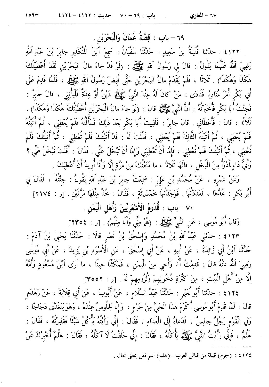 4122 - حدثنا قتيبة بن سعيد حدثنا سفيان سمع ابن المنكدر جابر بن عبد الله رضي الله عنهما يقول