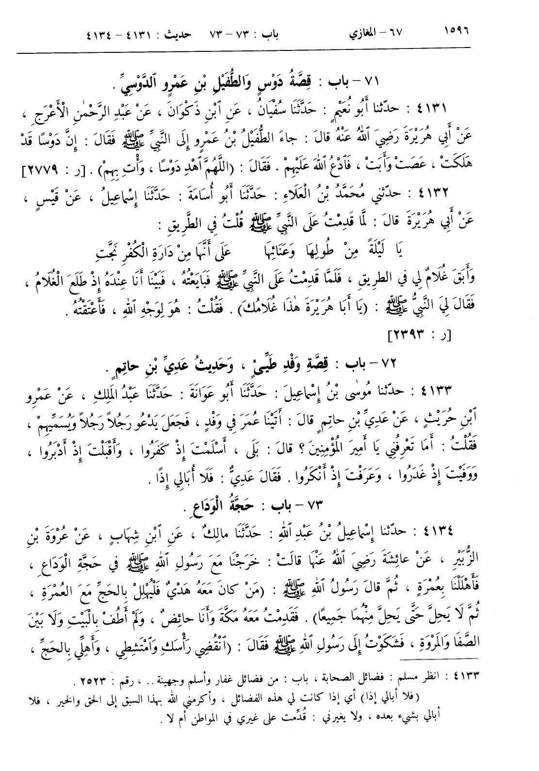 72 - باب قصة وفد طيئ وحديث عدي بن حاتم