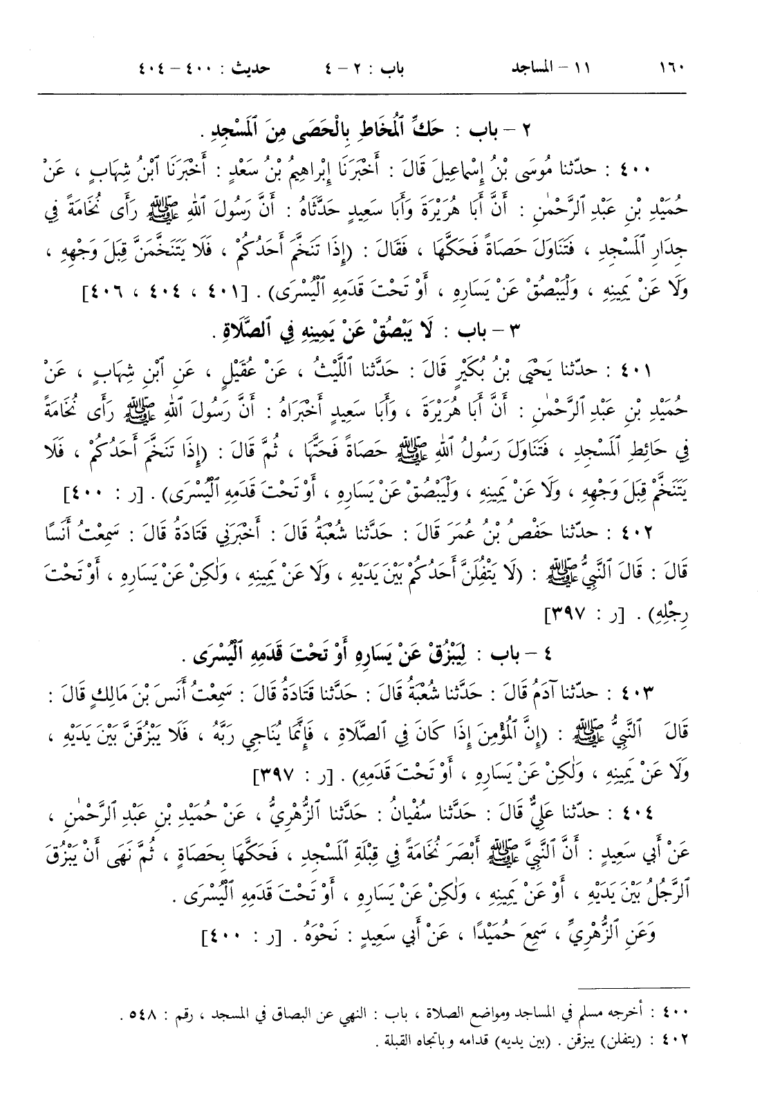 [ ش أخرجه مسلم في المساجد ومواضع الصلاة باب النهي عن البصاق