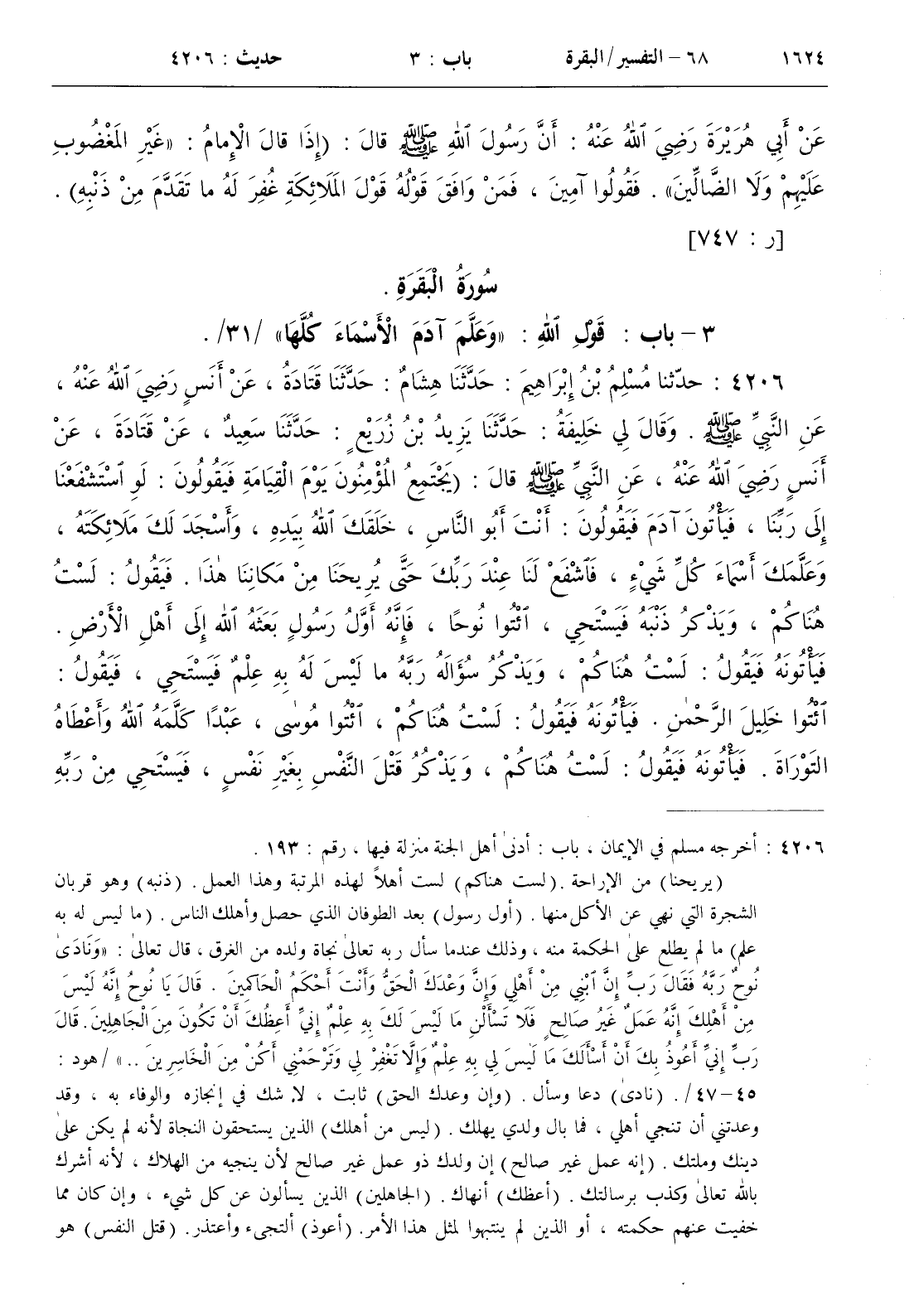 4206 - حدثنا مسلم بن إبراهيم حدثنا هشام حدثنا قتادة عن أنس رضي الله عنه عن النبي صلى الله عليه و سلم . قال لي خليفة حدثنا يزيد ابن زريع حدثنا سعيد عن قتادة عن أنس رضي الله عنه