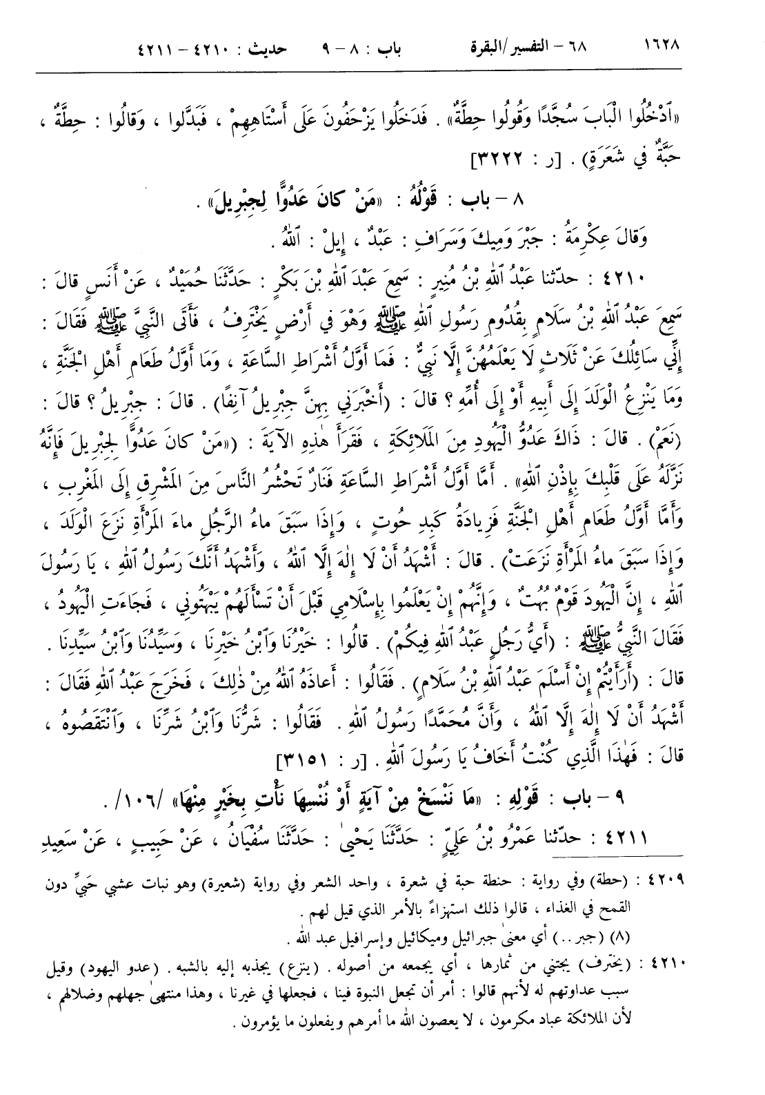 [ ش ( يخترف ) يجتني من ثمارها أي يجمعه من أصوله . ( ينزع ) يحذبهإليه بالشبه . ( عدوإليهود ) وقيل سبب عداوتهم له لأنهم قالوا أمر أن تجعل النبوة فينا فجعلها في غيرنا وهذا منتهى جهلهم وضلالهم لأن الملائكة عباد مكرمون لا يعصون الله ما أمرهم ويفعلون ما يؤمرون ]