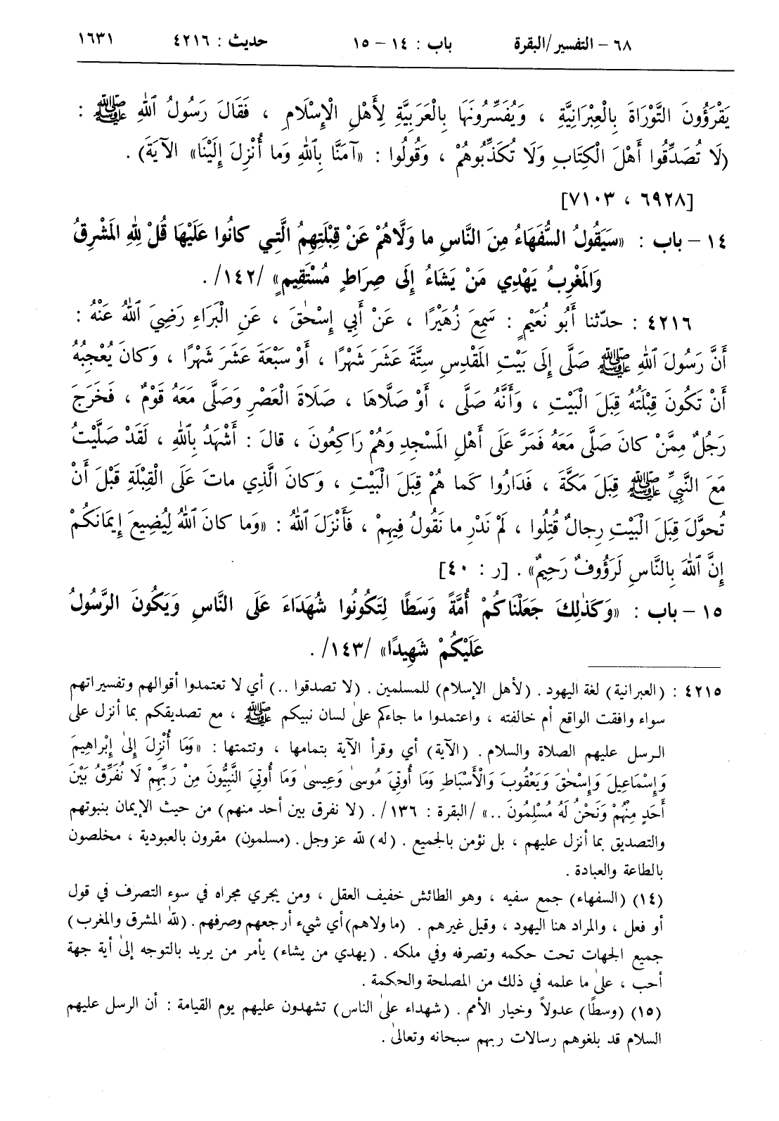 15 - باب { وكذلك جعلناكم أمة وسطا لتكونوا شهداء على الناس ويكون الرسول عليكم شهيدا } / 143 ]