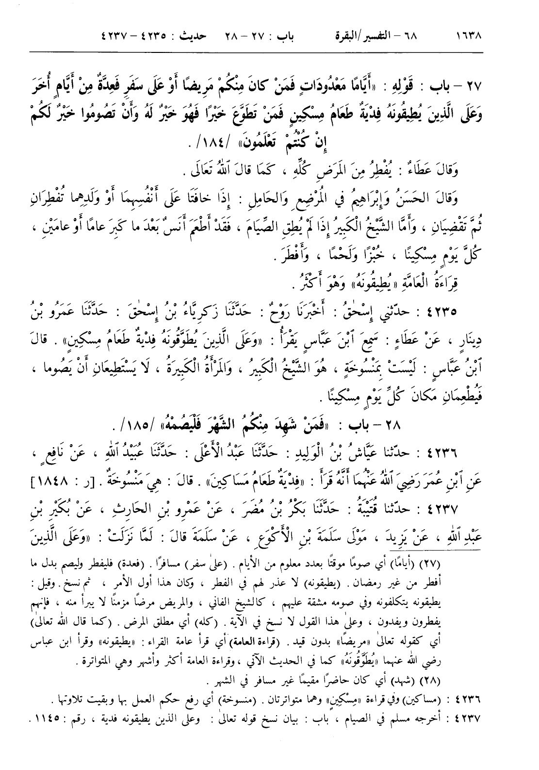 28 - باب { فمن شهد منكم الشهر فليصمه } / 185 /
