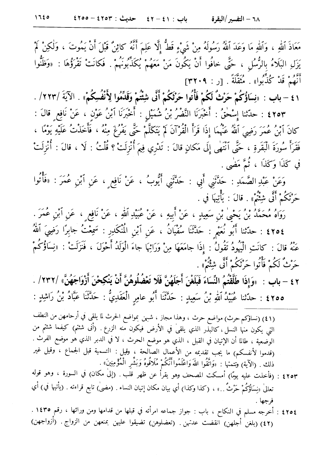 4254 - حدثنا أبو نعيم حدثنا سفيان عن المنكدر سمعت جابرا رضي الله عنه قال كانت اليهود تقول إذا جامعها من ورائها جاء الولد أحول فنزلت { نساؤكم حرث لكم فأتوا حرثكم أنى شئتم } ]
