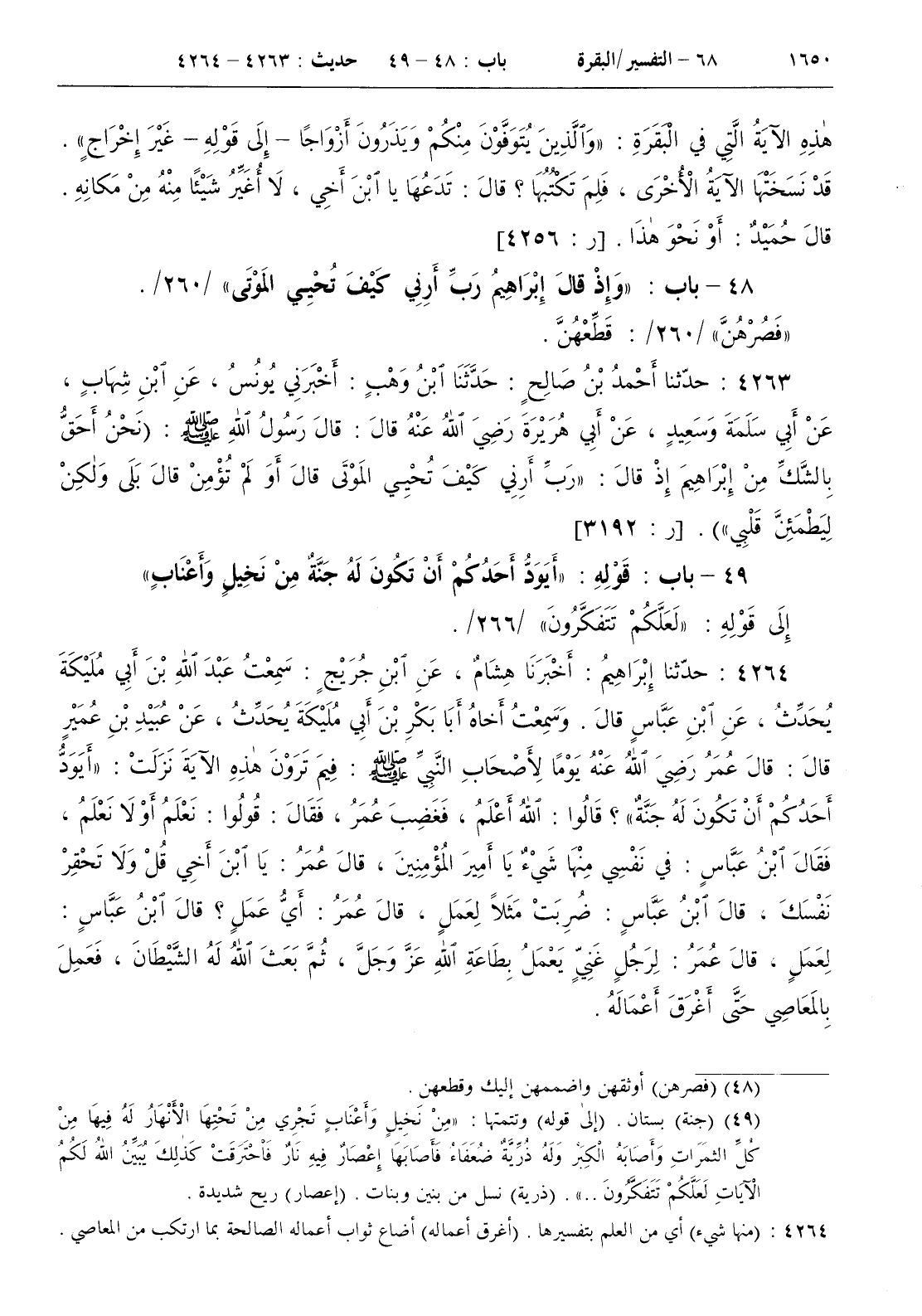 49 - باب قوله { أيود أحدكم أن تكون له جنة من نخيل وأعناب }