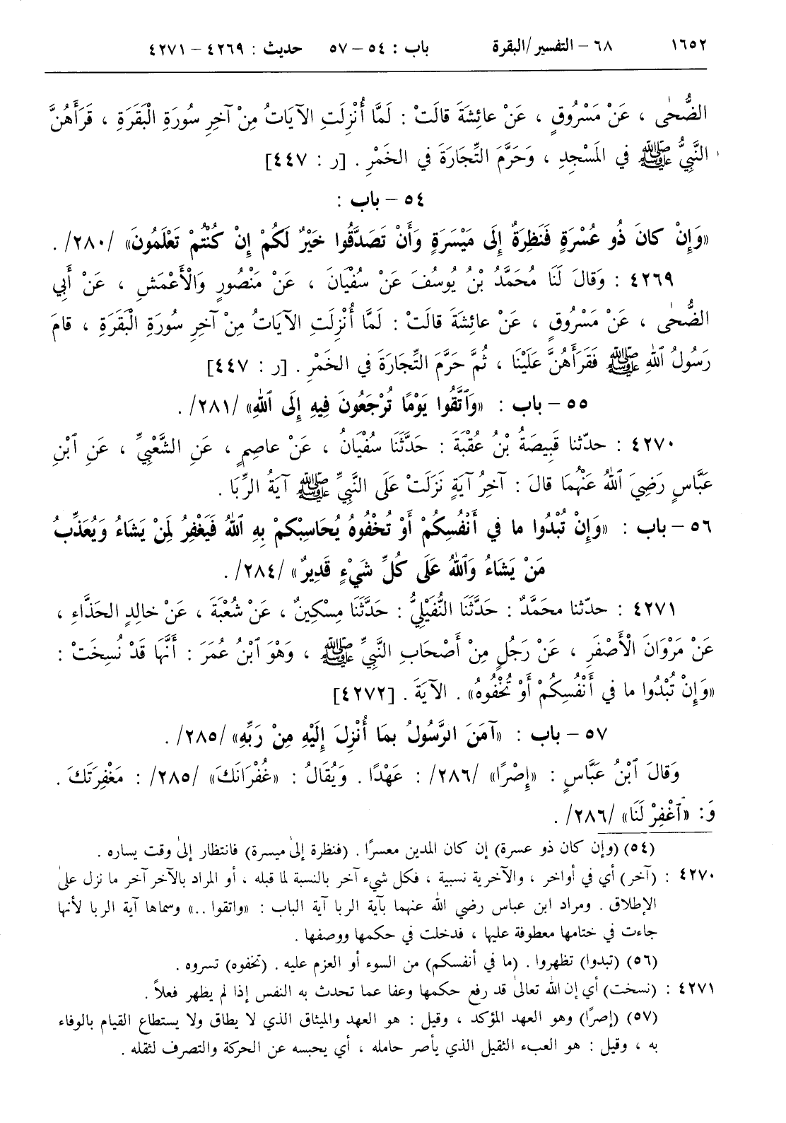 4270 - حدثنا قبيضة بن عقبة حدثنا سفيان عن عاصم عن الشعبي عن ابن عباس رضي الله عنهما قال
