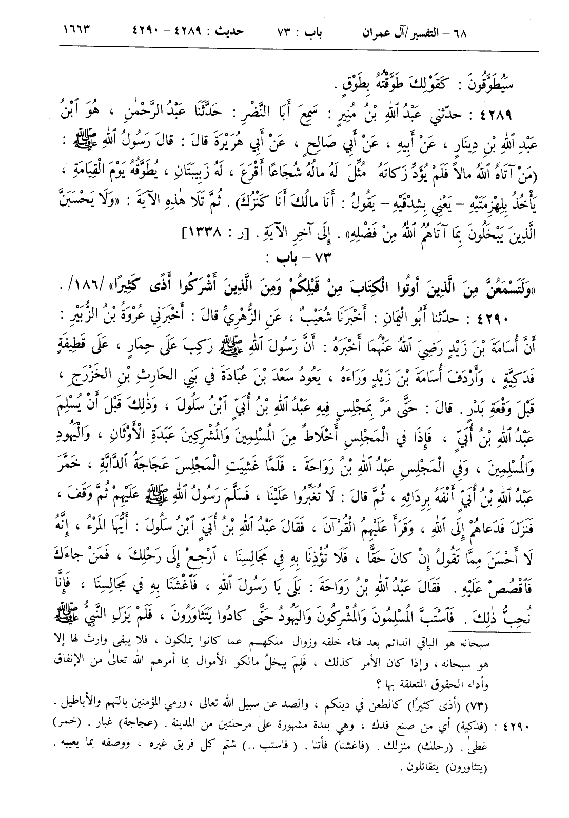 73 - باب { ولتسمعن من الذين أتوا الكتاب من قبلكم ومن الذين أشركوا أذى كثيرا } / 186 /